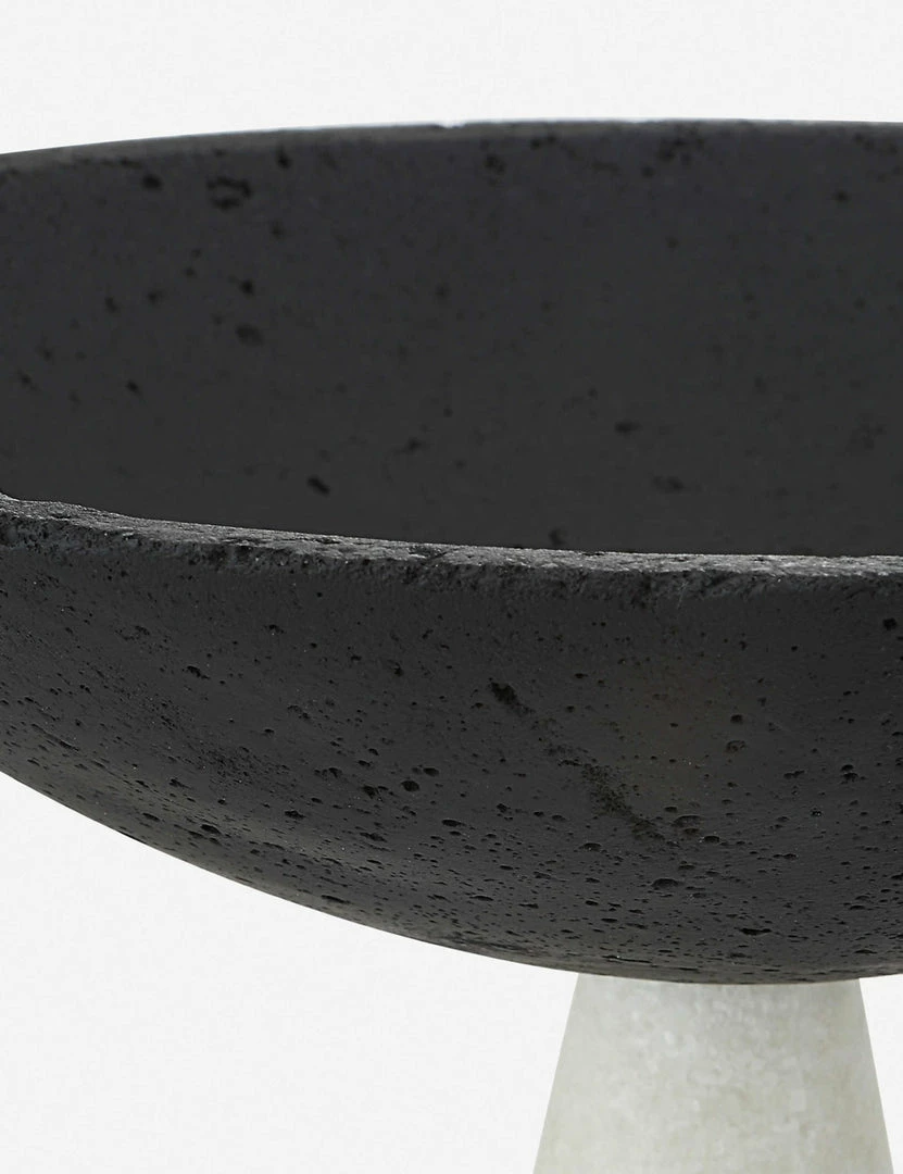 Visual impact abounds in the tonal contrast and pedestal silhouettes of these decorative bowls. Bring a modern touch to your console table or entryway decor with the striking balance and granulated stone texture of this sculptural duo.