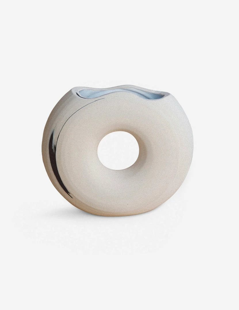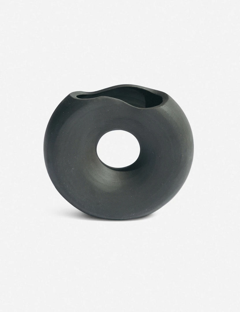 Modern. Minimalist. The perfect decorative piece for your space. This circular vase features wave-like detailing and organic edges.