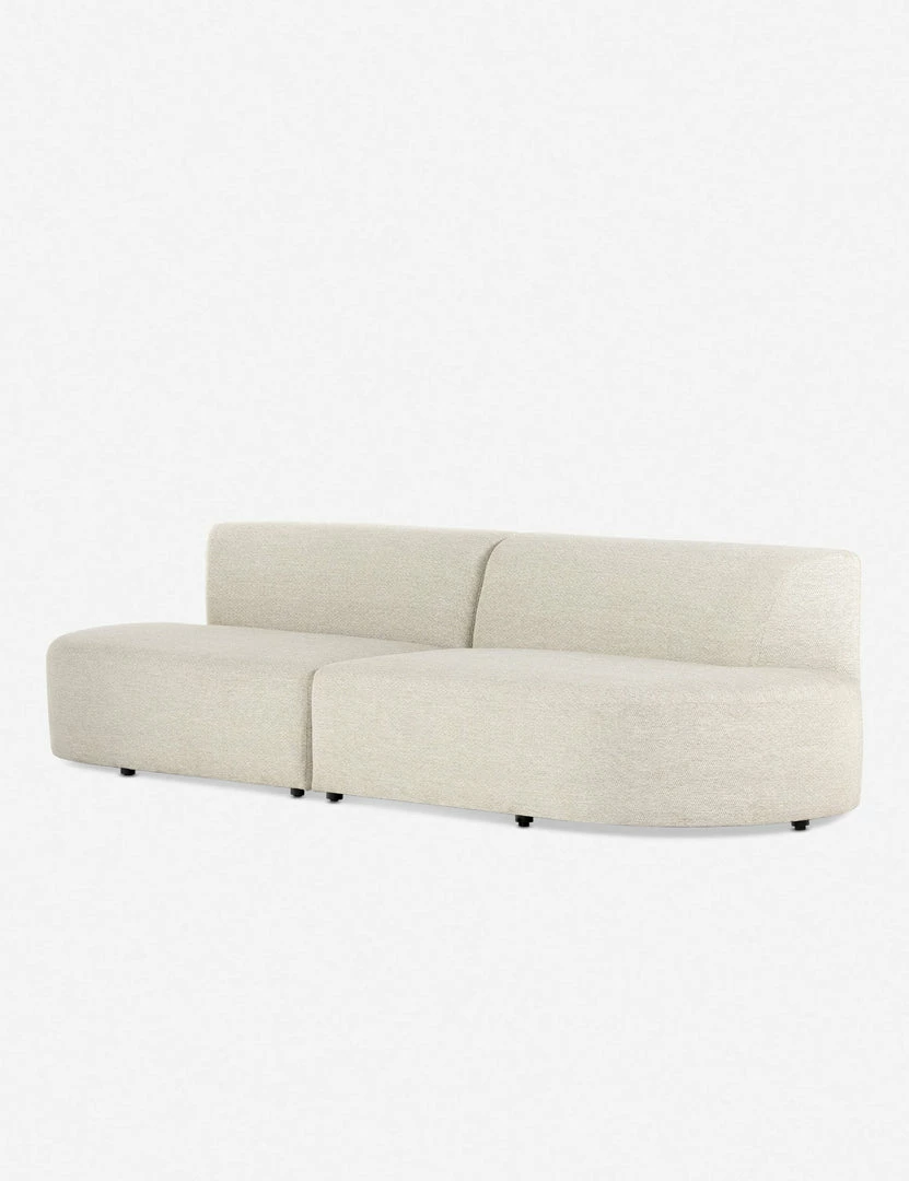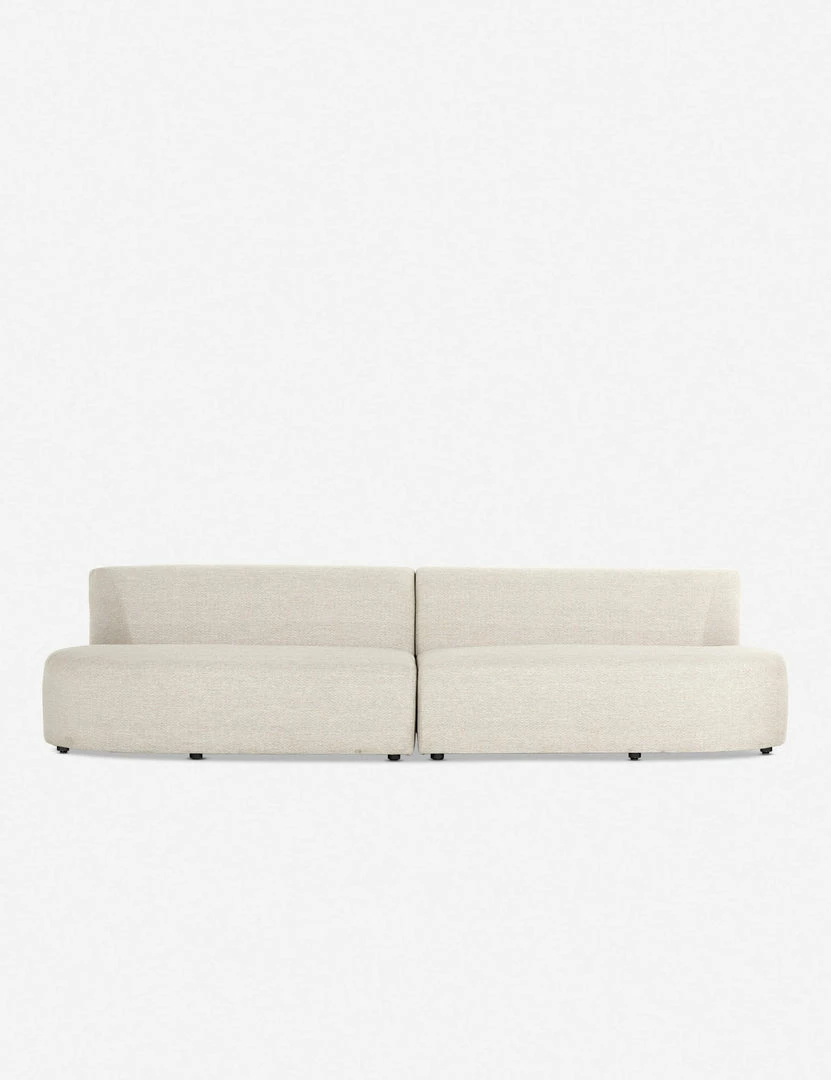 Soft, sculptural lines bring a touch of retro glam to this sectional. The plush form is upholstered in a UV-resistant, water-repellent fabric for easy care. You can even float this sectional sofa poolside or on your patio for a high-style outdoor lounge.