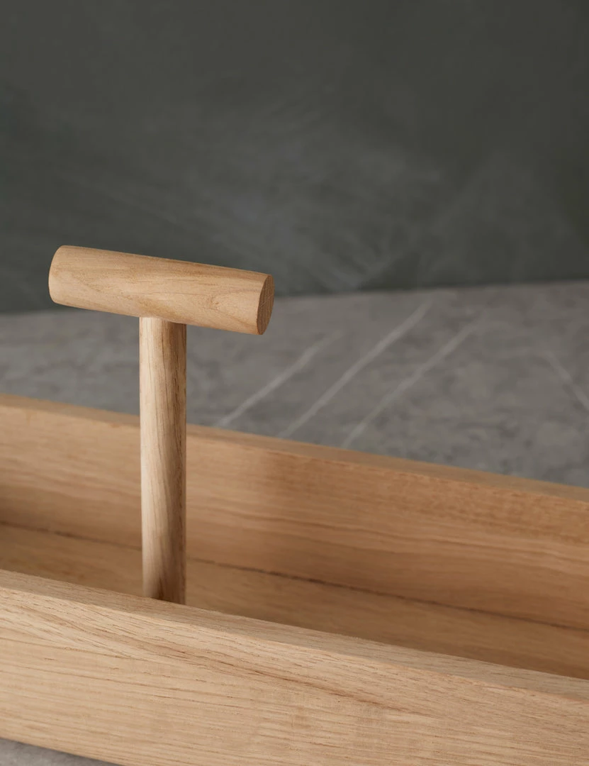 From entertaining to casual meals, this collection of versatile dining essentials is made to elevate your table with a natural touch. Soft lines and a convenient handle make this oak container perfect for serving an assortment of flatbreads or artisanal loaves.
