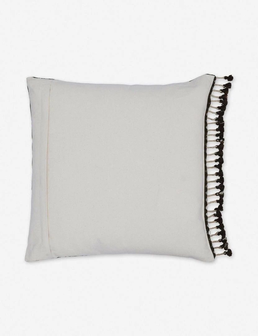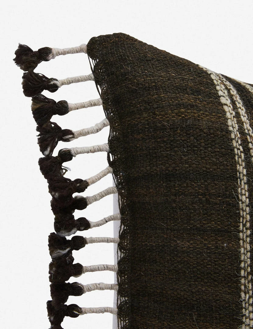 Woven with naturally dyed wool, this black throw pillow combines classic stripes and intricate geometric patterns throughout. Finished with knotted fringe, this handmade decorative pillow takes artisan appeal to the next level in any space.