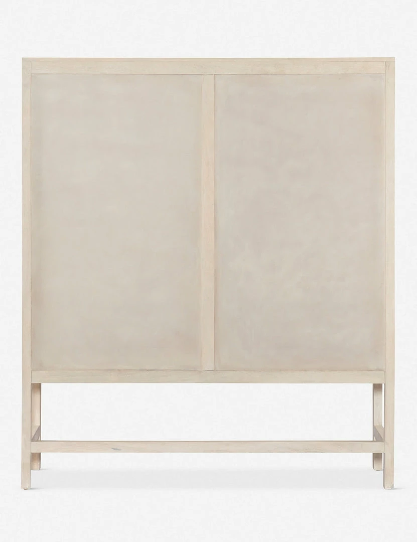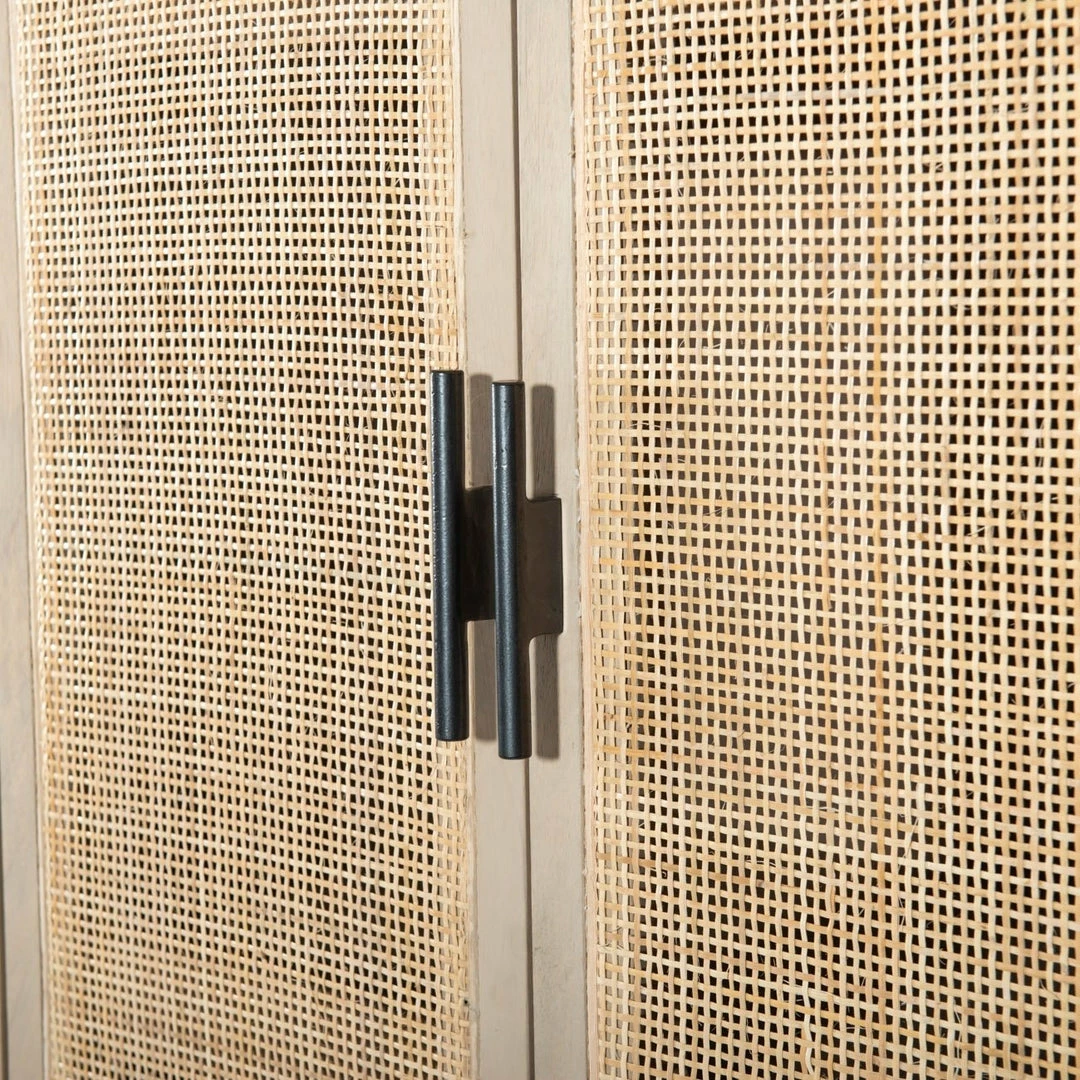 Spacious storage is essential for transitional spaces. This large wooden cabinet has an airy, natural feel with a light mango wood frame and woven cane doors for added texture. The open bottom is perfect for adding storage bins or baskets to complete the look, and works for hallways, dining rooms and even bedrooms.