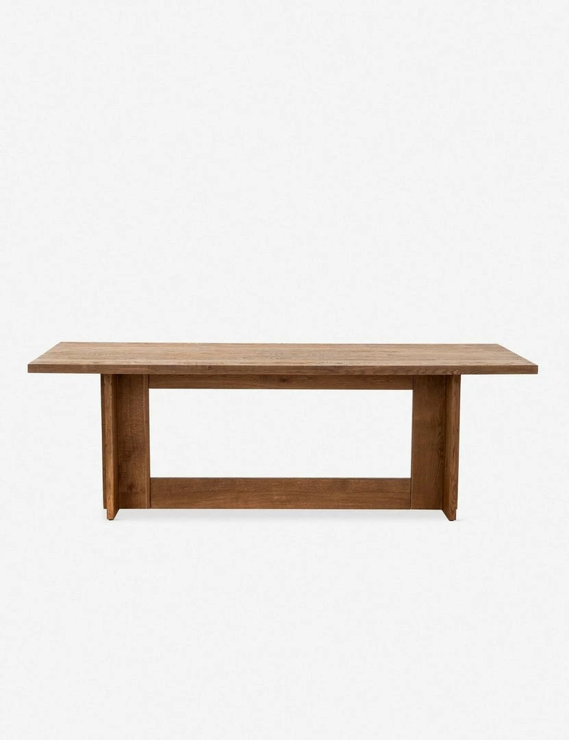 A simple wooden dining table gets a modern update with open styling and natural textures. This versatile piece goes with everything from rustic eat-in kitchens to cool, contemporary dining rooms.