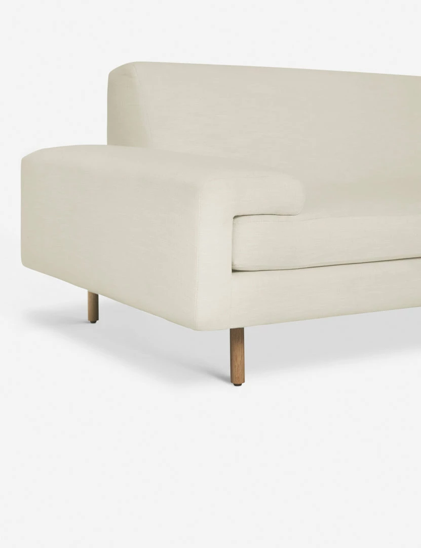 A simply stunning transitional sectional you can tailor to your space. Set on wooden dowel legs, this sectional sofa offers a plush, airy silhouette to elevate your look. The clean-lined frame features a soft cushion seat fully upholstered in linen for a soft, natural fiber touch.
