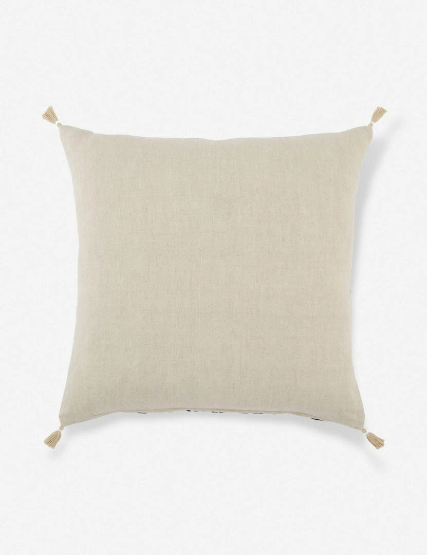Woven from linen, this throw pillow is an elevated accent to add to your bedroom or living space. Striking black and neutral ivory tones, an embroidered center stripe, and corner tassels give this decorative pillow its global feel.