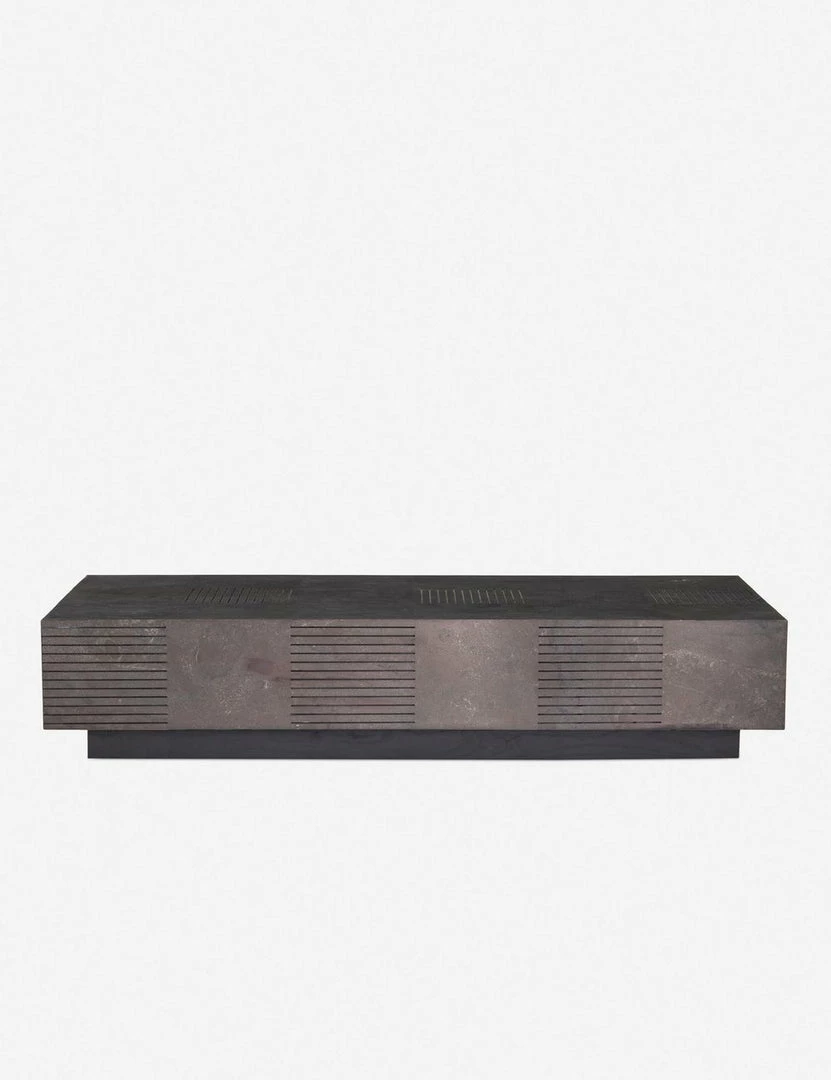 The perfect centerpiece for your modern living room, this large rectangular coffee table features slatted detailing throughout, supported on a black platform base. Add your favorite coffee table books and a small indoor plant, and this low coffee table will be the star of your seating area.