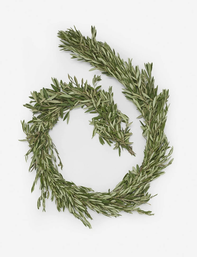 Fashioned from olive branches picked from the foothills of Northern California and fresh cut to order, this garland offers a lush bed of crisp, green texture to your season. This elegant accent will keep your cozy space feeling fresh and inviting with a natural touch.