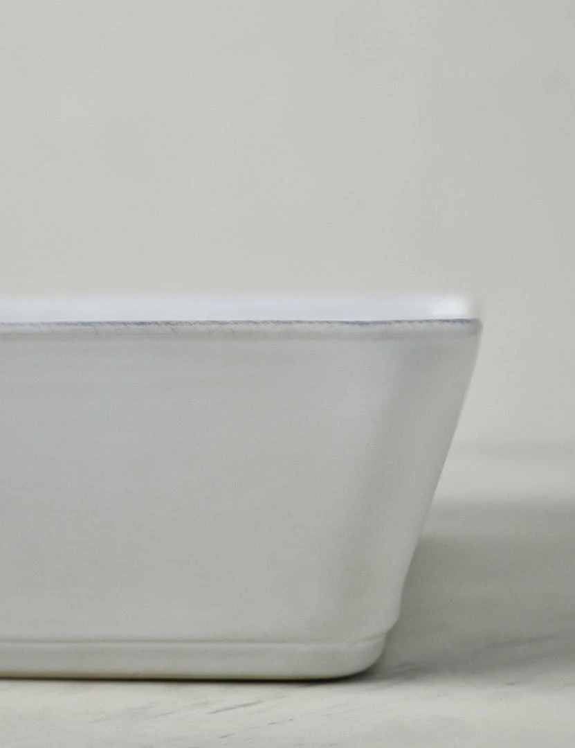 Refined lines, versatile design, and durable stoneware construction make the Friso dinnerware collection a favorite, from fine dining to everyday eating. The grooved edge is hand-painted for an artisanal touch that will fit perfectly into your carefully curated home decor. In a crisp white finish, this baking dish is an elegant and handy kitchen accessory.