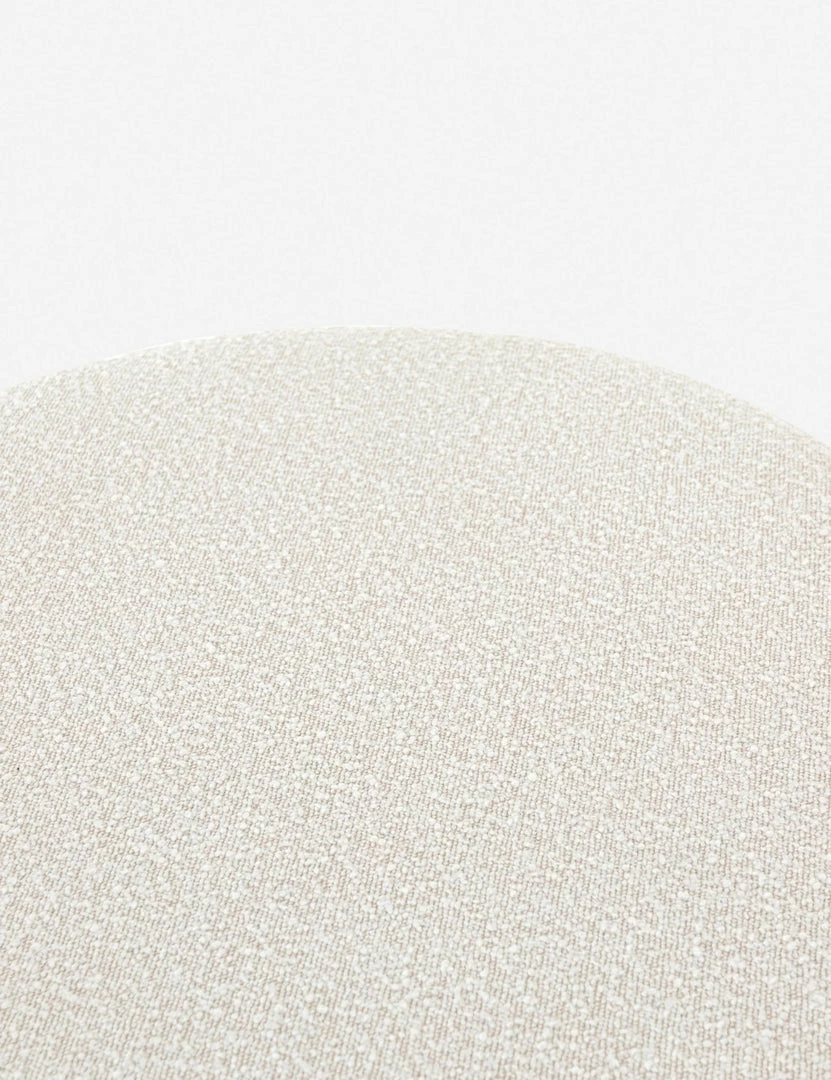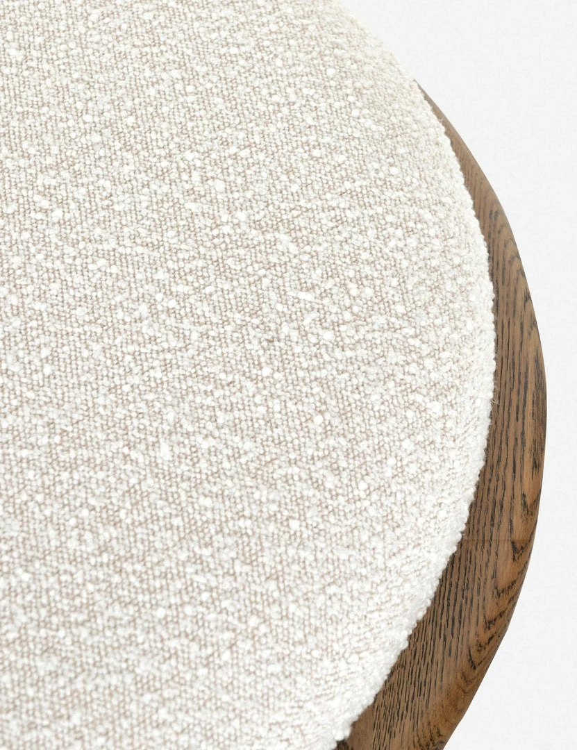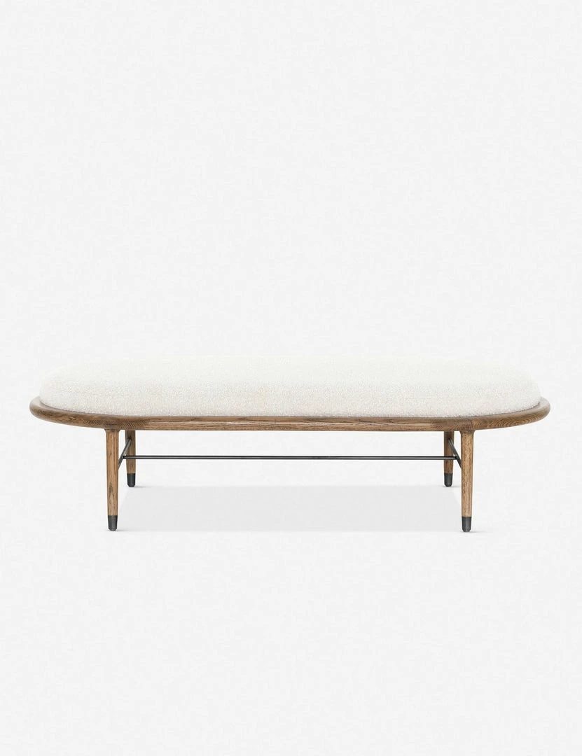 This bench blends understated style with function, with its oval-shaped upholstered seat being roomy enough to provide an extra surface when you pair it with a tray. In inviting cream, this bench’s textural boucle upholstery is woven into a sculpted oak base and then finished with gunmetal-finished iron stretchers and ferrule caps for a fresh finishing touch.