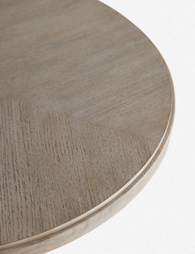 Functional and artful in design, this round end table features a three-prong base with exquisite curves. The natural wood textures lend a more approachable feel to the look, making this accent table the perfect place for a sculptural lamp or modern art piece.