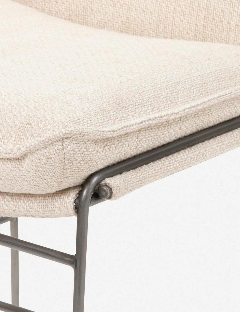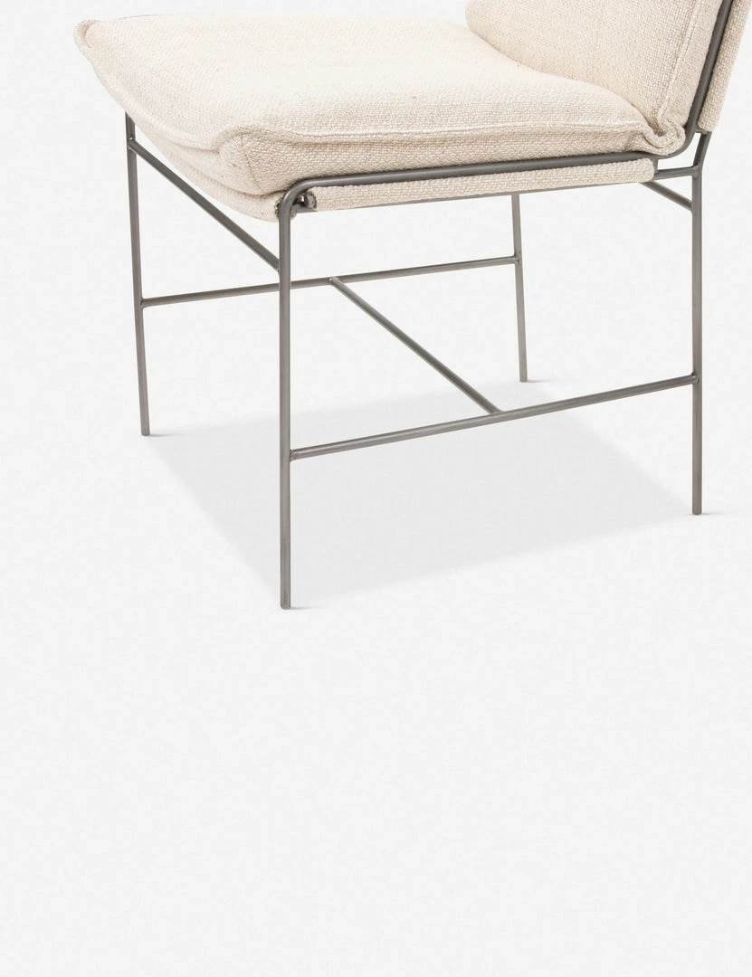 This dining room chair expertly balances an armless, minimalist silhouette with a thoroughly comfortable seat. In an ivory-taupe color palette, its textural and high-performance fabric is cradled atop the slim, airy iron framing. We love sitting this dining chair with Deco-inspired or earthy, modern spaces.