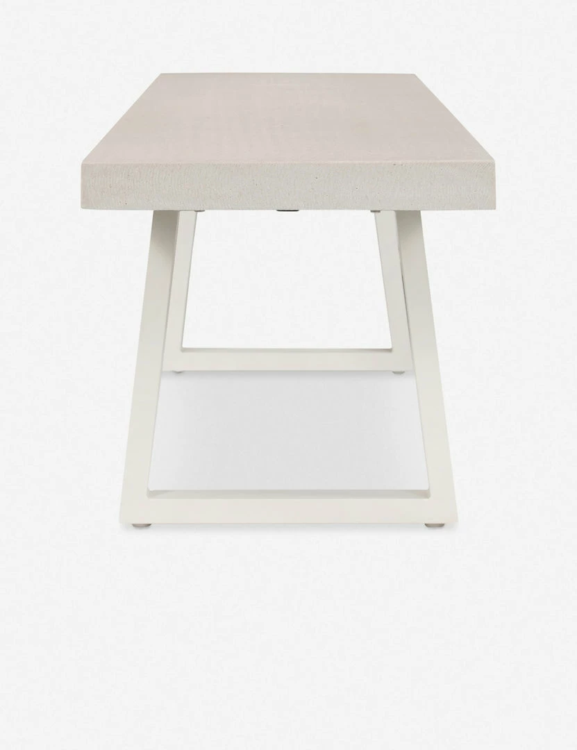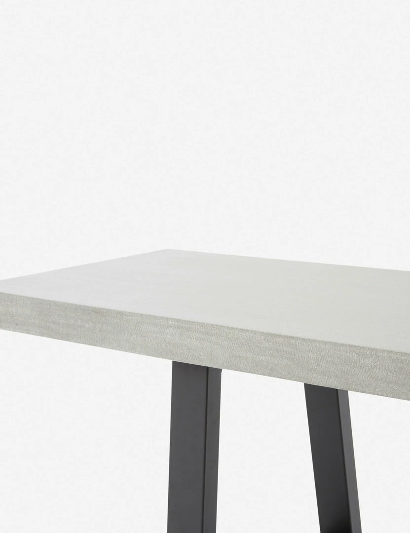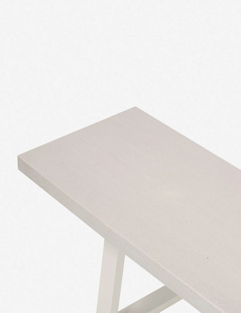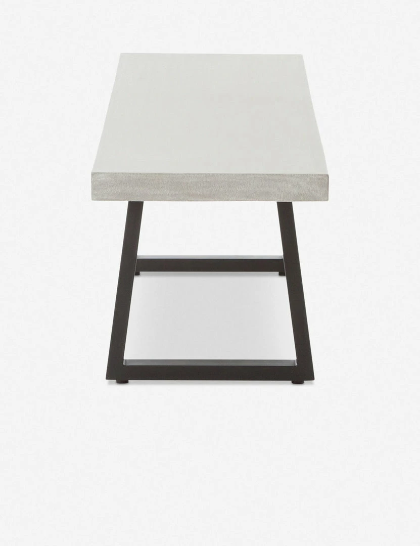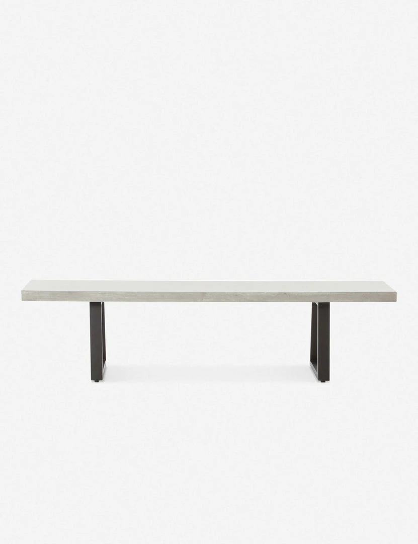 Add this dining bench to the mix for modern style indoors or out. Featuring a lava stone top and angular iron legs, this dining table bench has a minimalistic look with an industrial edge. Style this bench at your outdoor table, in the garden, or wherever you need sturdy seating or an extra spot for plants and decor.