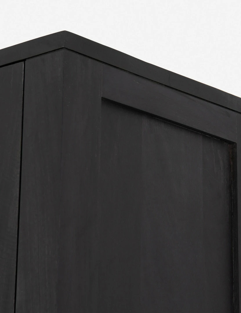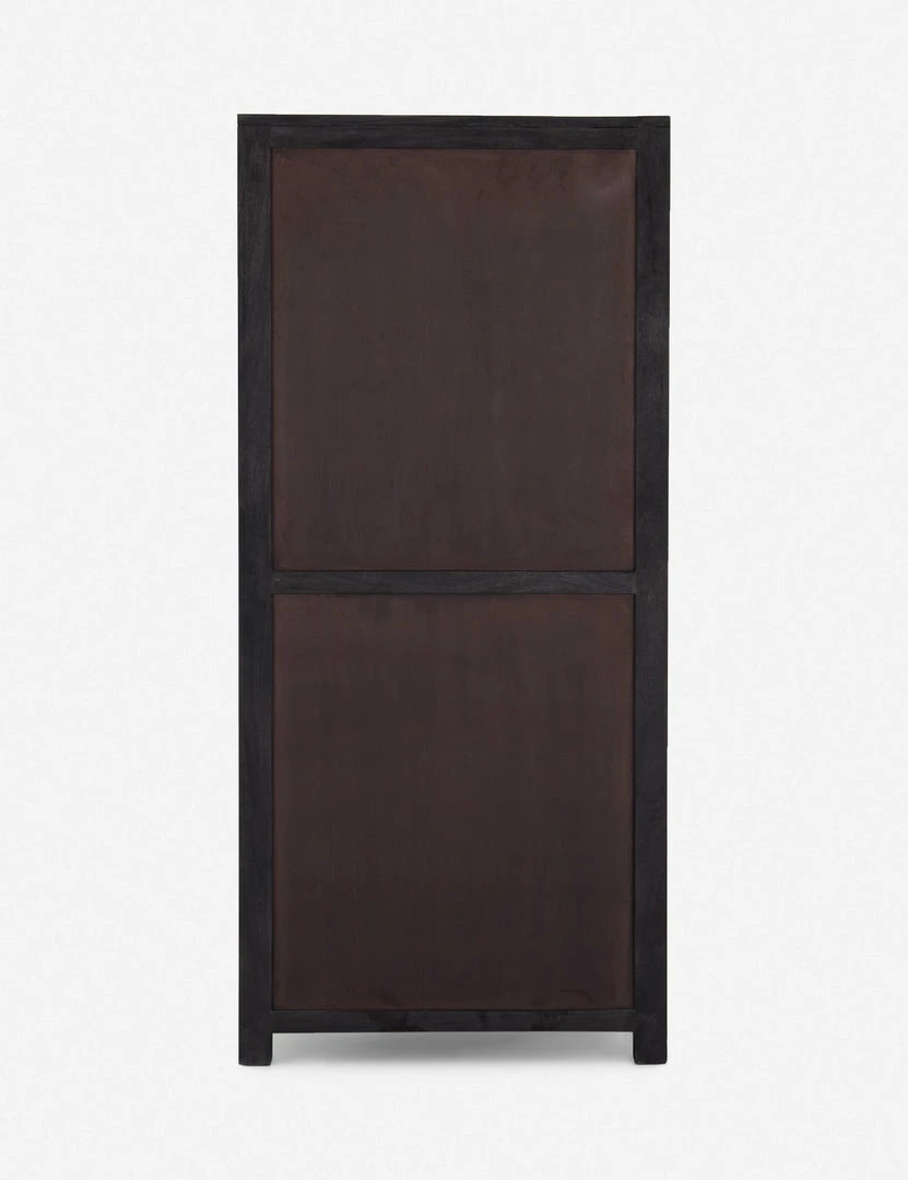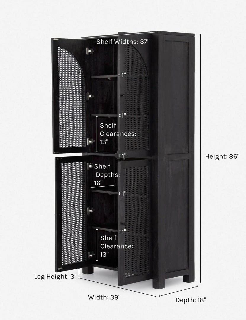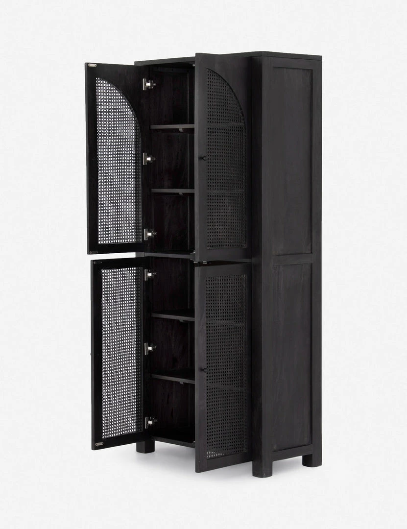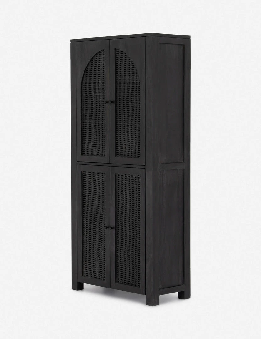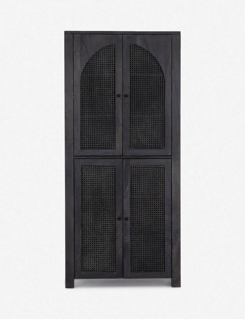Arched cane panels bring a vintage-inspired look to this wood cabinet, making it the perfect transitional storage piece. In an all-black finish with iron hardware, this storage cabinet adds grounding style to your dining room or living room.