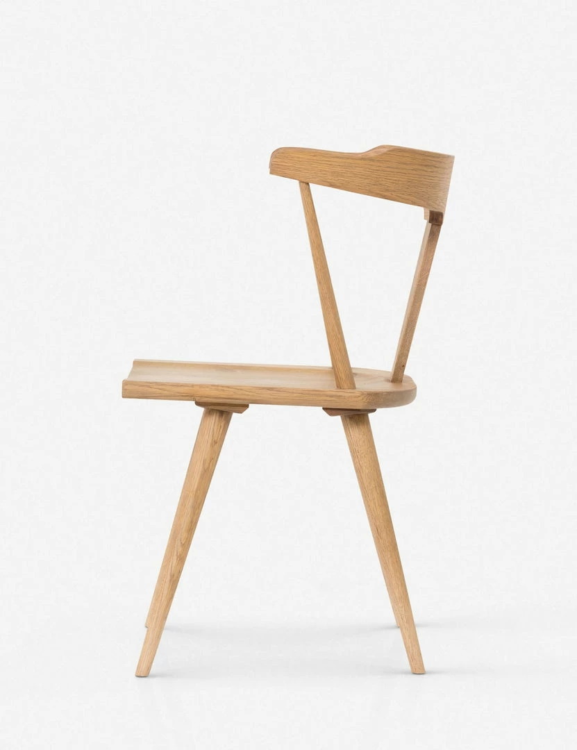 With a carved seat, curved back and interesting lines, this dining chair offers a timeless feel with modern appeal. Wooden dining chairs are always a favorite for bringing natural textures into the mix.