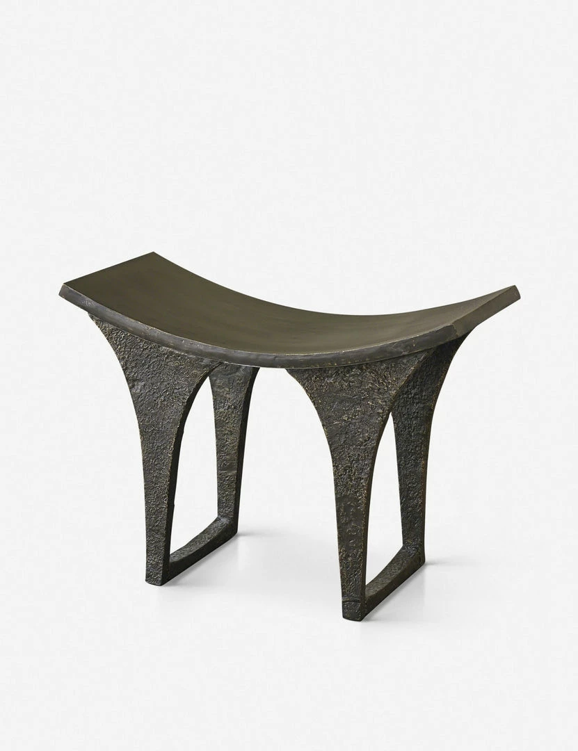 For the well-traveled space, this iron stool takes your style around the globe. The pagoda-inspired design features sweeping curves, sleek lines, and cutout supports, complete with a textured finish.