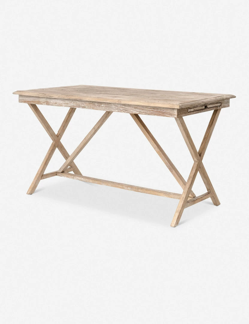 With a rough-hewn trestle design, this whitewashed desk casts a spare architectural profile. The warm, natural texture of the reclaimed elm construction will bring a French-inspired charm to your workspace for a look that feels organic and open.