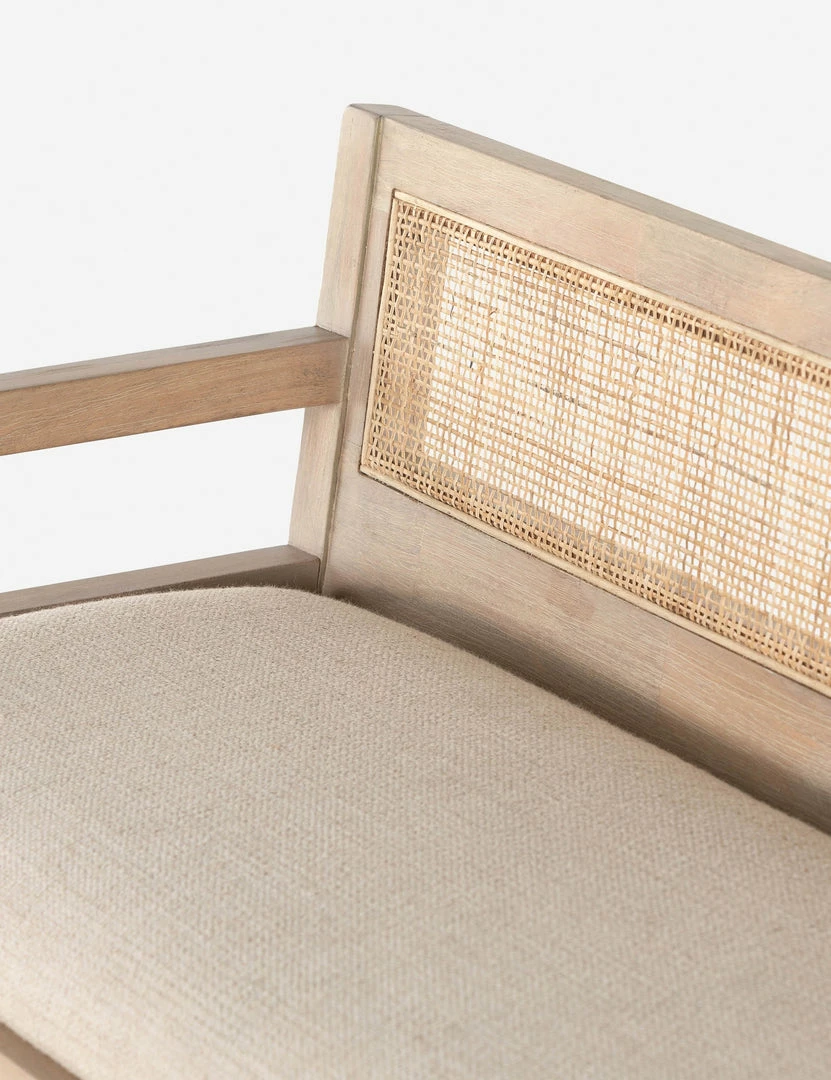 A timeless, clean-lined silhouette is elevated by detail-rich wood grain and woven cane seat backs to create this Margot Bench. Crafted from natural mango wood, its whitewashed finish creates a tonal look with its woven cane inlays and performance fabric seat. This versatile bench seamlessly adapts to your entryway, living space, and bedroom.