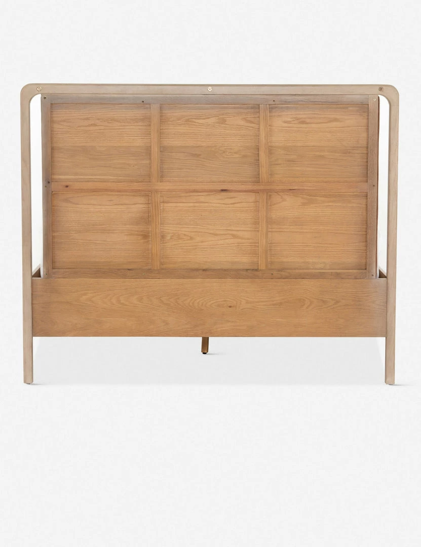 Taking its inspiration from leather sling chairs, this bed frame is a clean-lined and completely unique focal point in your master bedroom. Constructed from washed oak wood and featuring subtly rounded edges, it stylishly frames a tan top-grain leather headboard. Add in lighter neutrals and moody blues and greens to create a modern material mix.
