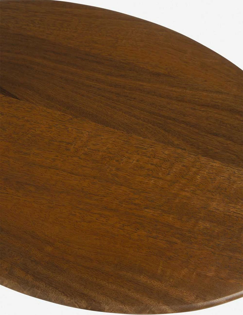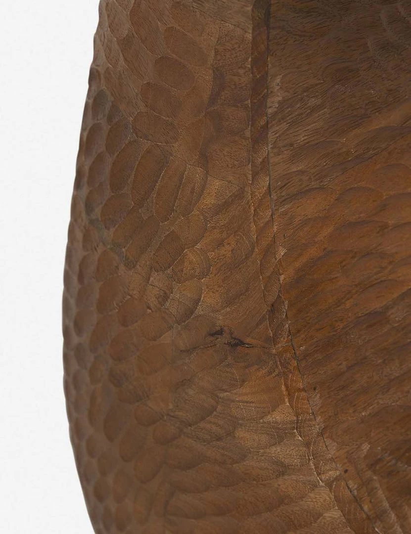 This artisan handmade side table is carved and features rich textural appeal. The playfully balanced designed and handcrafted details make this mango wood end table an eye-catching accent for the edge of a sleek sofa, between two accent chairs, or even bedside.
