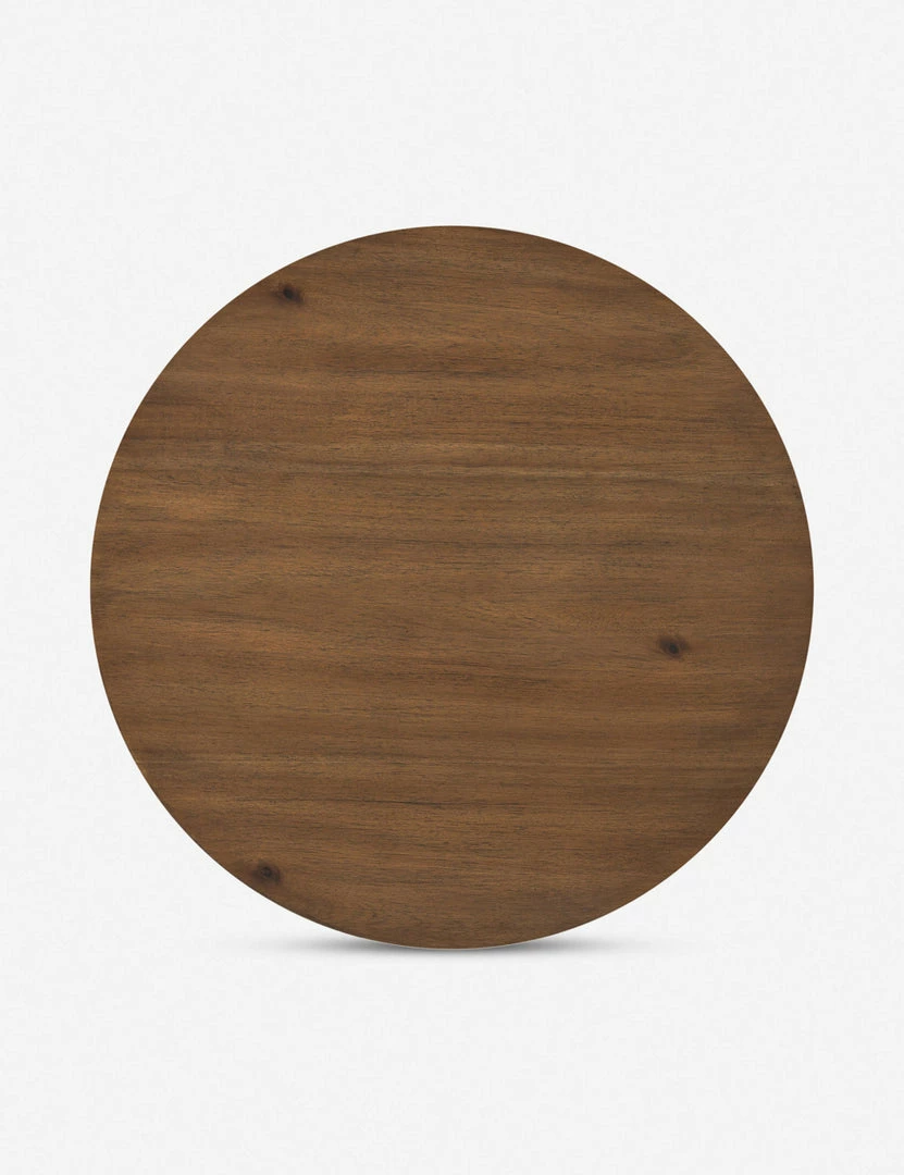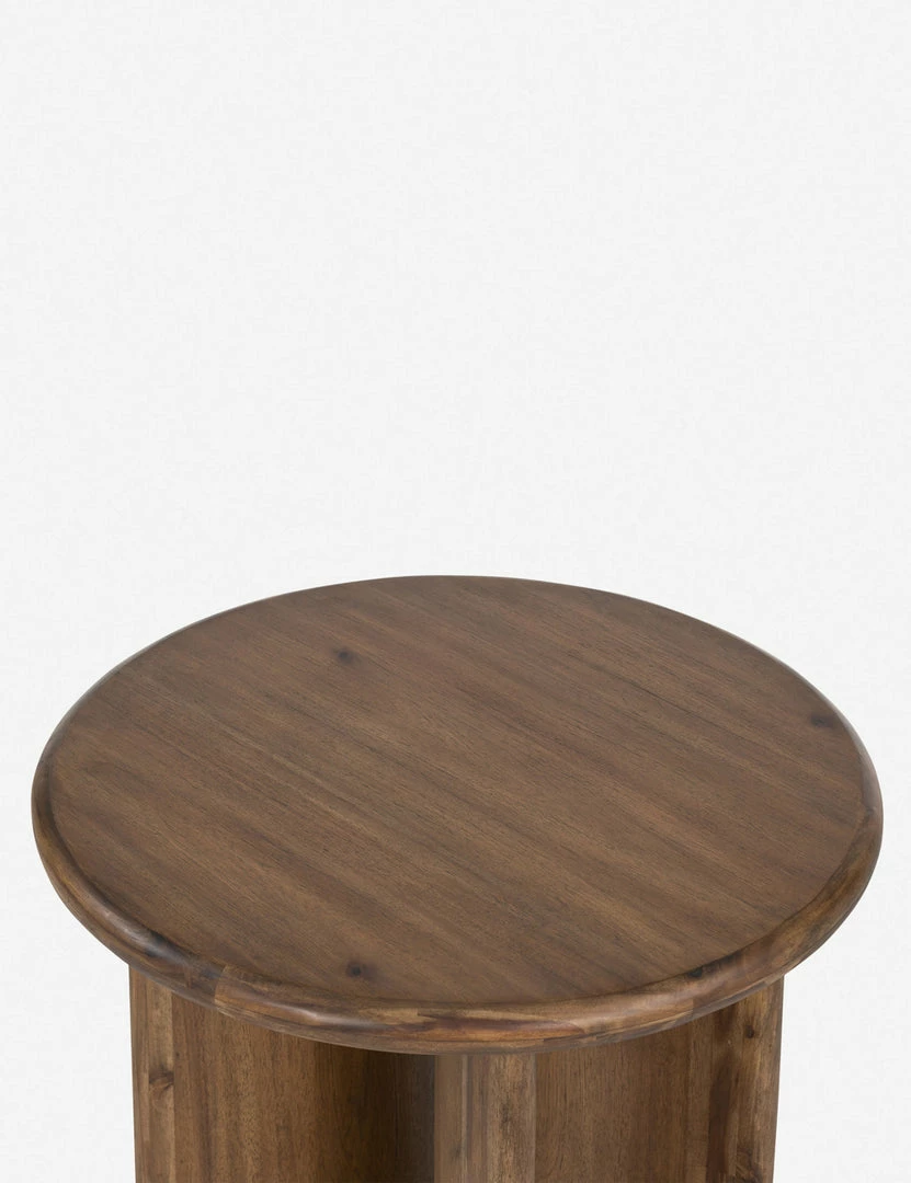 Clad in a thick acacia veneer, the delicate lines of this round side table are reflected in the curved legs to offer a sturdy design with a softer, rounded profile. We love this end table styled next to a clean-lined sofa or chair for a refining touch.