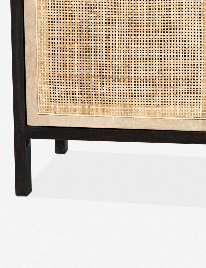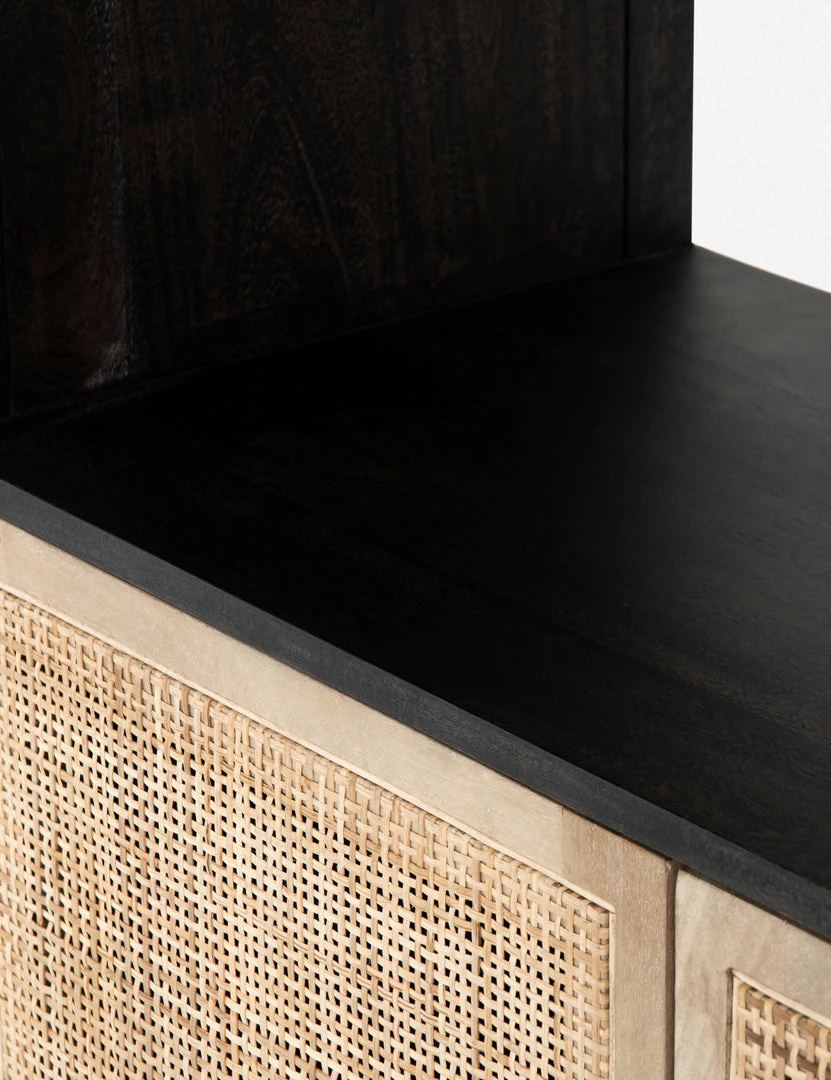 Thoughtfully designed with textural elements done in a high contrast palette, this bookcase also offers multiple open shelves perfect for storage and display. The black acacia wood gives a cool, modern look, while woven cane doors bring a touch of warmth. Don’t overlook the ample hidden storage behind those beautiful doors.