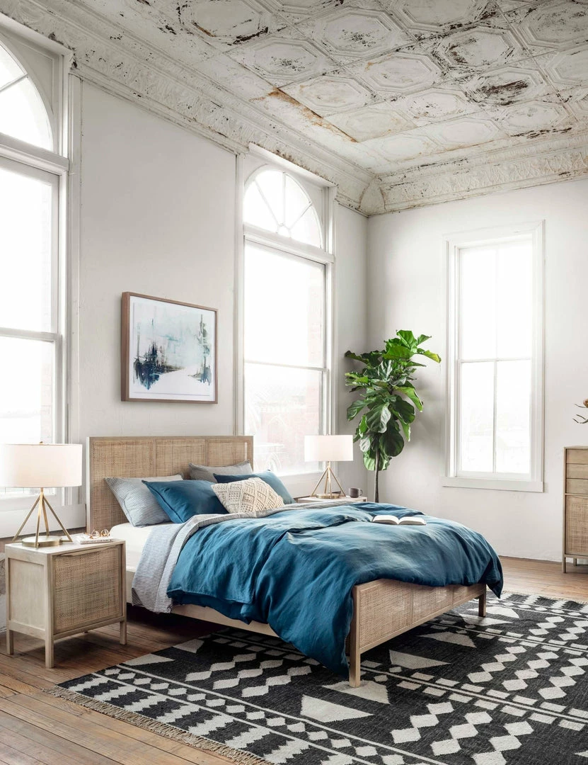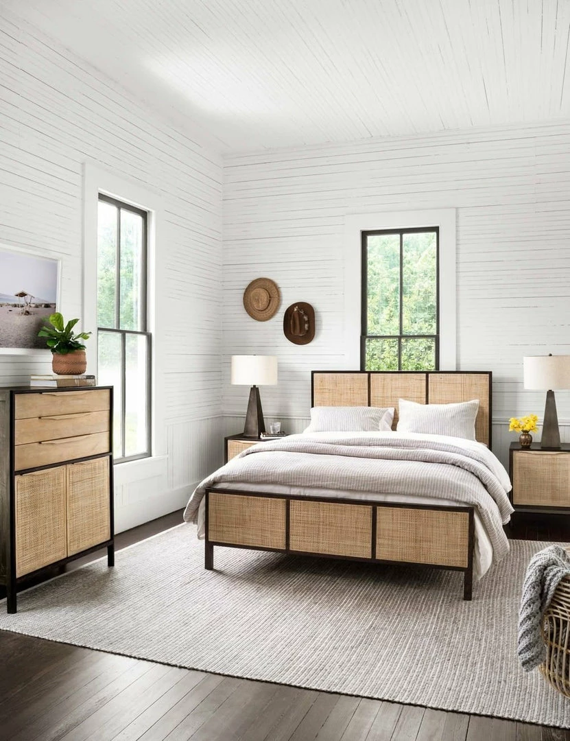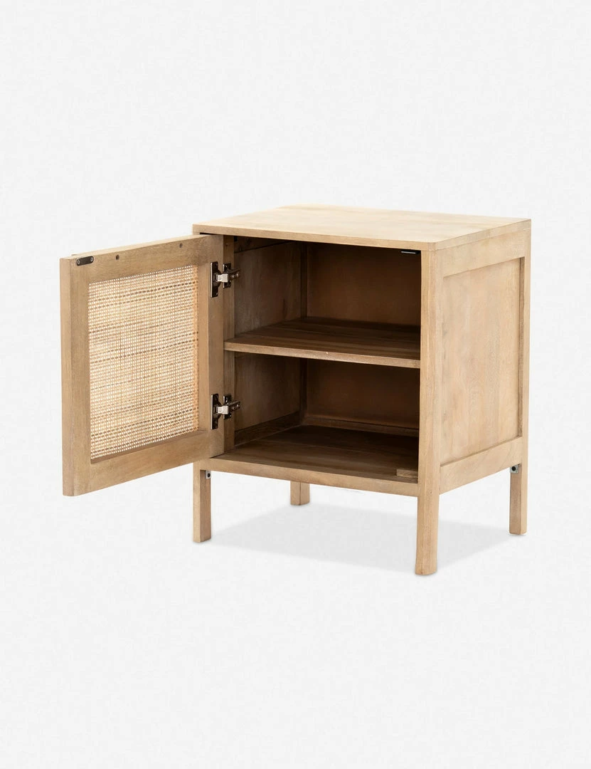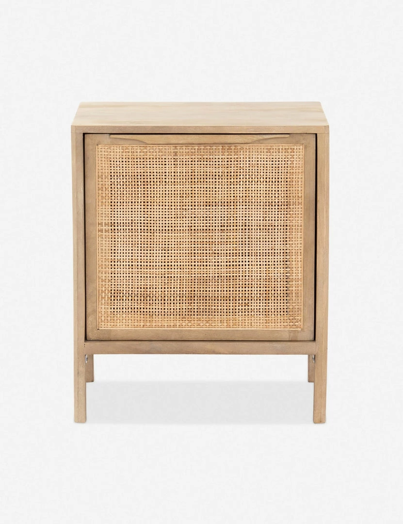 A sleek, square silhouette is a minimalist way to elevate a bedroom without too much formality. The woven cane door offers gorgeous tonal variations for added texture, and we love the practicality of an easily removable shelf.