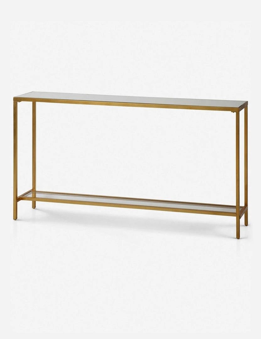 Slender and sleek, our Hasina Console Table is the perfect piece for your entry way or behind your sofa. With a mirrored top and an antique gold finish, it will provide a convenient place to drop your keys when you walk in the door.