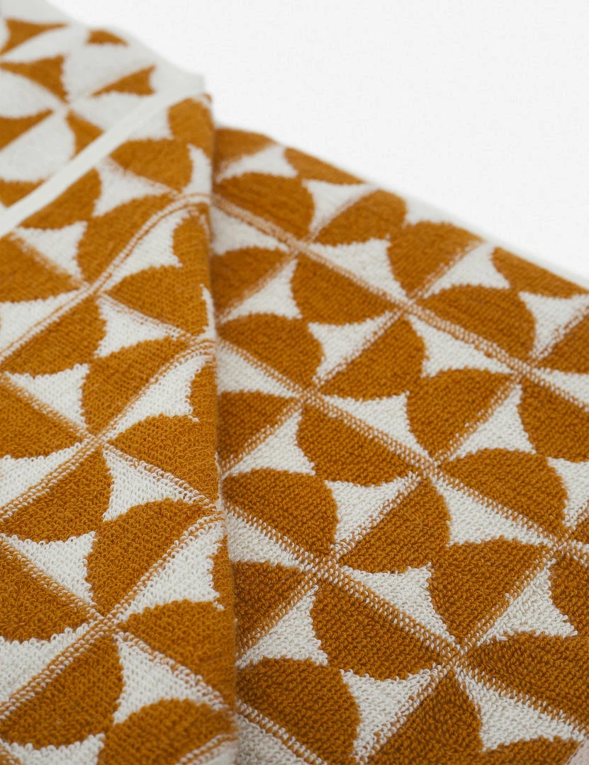 A wondrous half-moon design adorns both sides of this towel in an alternating pattern. Made from 100% organic cotton, its gentle natural fiber is fast-drying and practical while its two-sided design can brighten the aspect of a bathroom or add dynamic visual appeal to a poolside lounge.