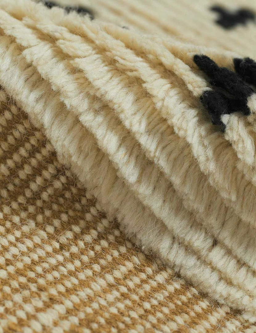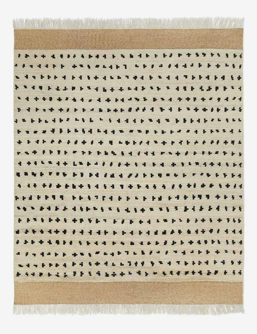 A mixed dot motif and flatwoven border come together in an organic arrangement to create a dynamically textured floor rug. Lay this rug in a dining room or living space for a pop of texture and pattern. This piece is from our exclusive Sarah Sherman Samuel collaboration and features all the trademarks of her warm, edited style.