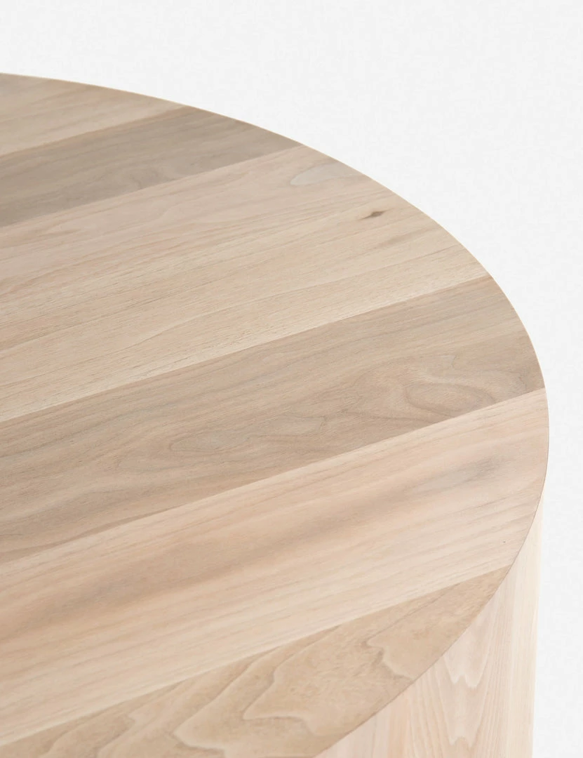 A naturally stunning centerpiece for your living space, this round coffee table features a paneled wood design, with woodgrain detailing throughout. The sturdy living room table rests on a low base, making it the perfect surface for coffee table books, indoor plants, and tabletop sculptures.
