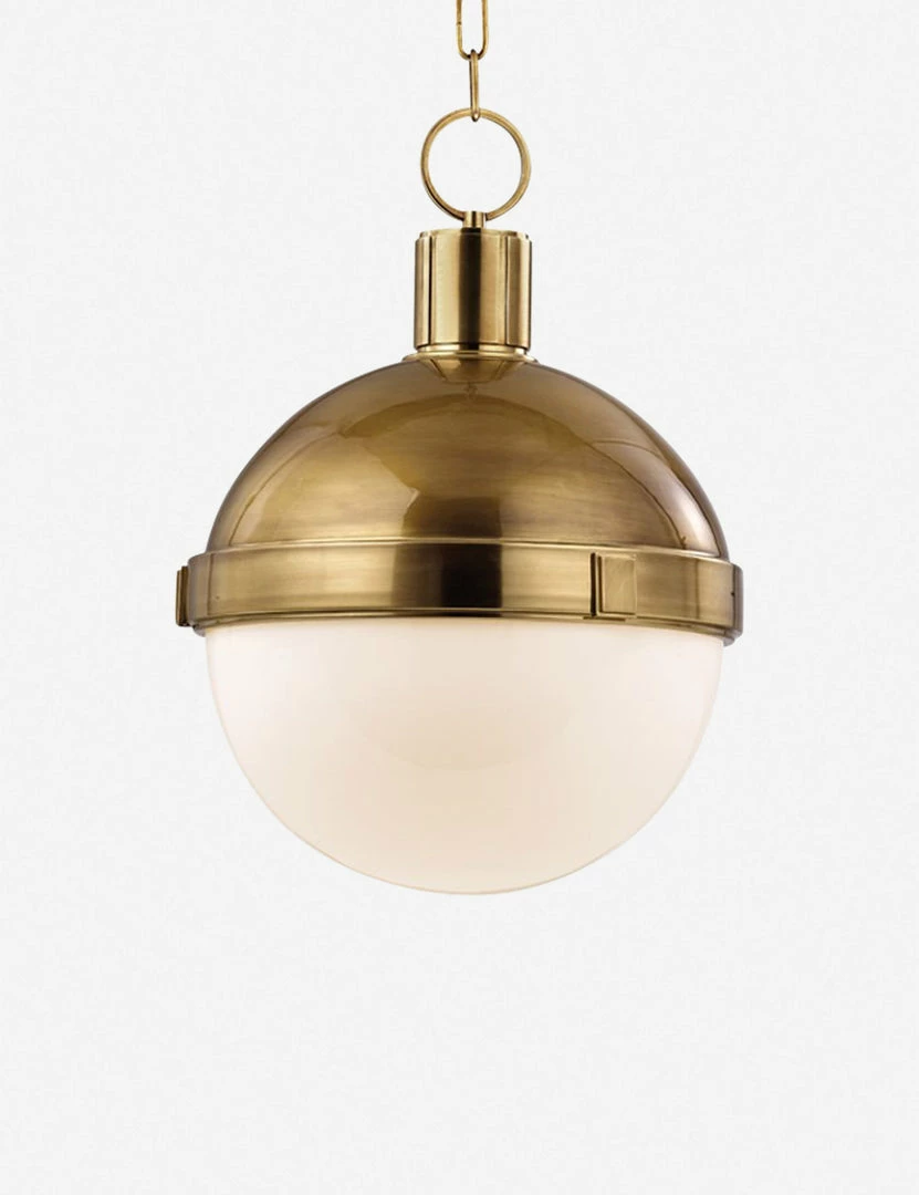 Half glass, half metal, the Jackson pendant is equal parts delicate and tough. A brass top connects to its hanging cord with a single ring, while the opaque glass provides ambient lighting to the space below.