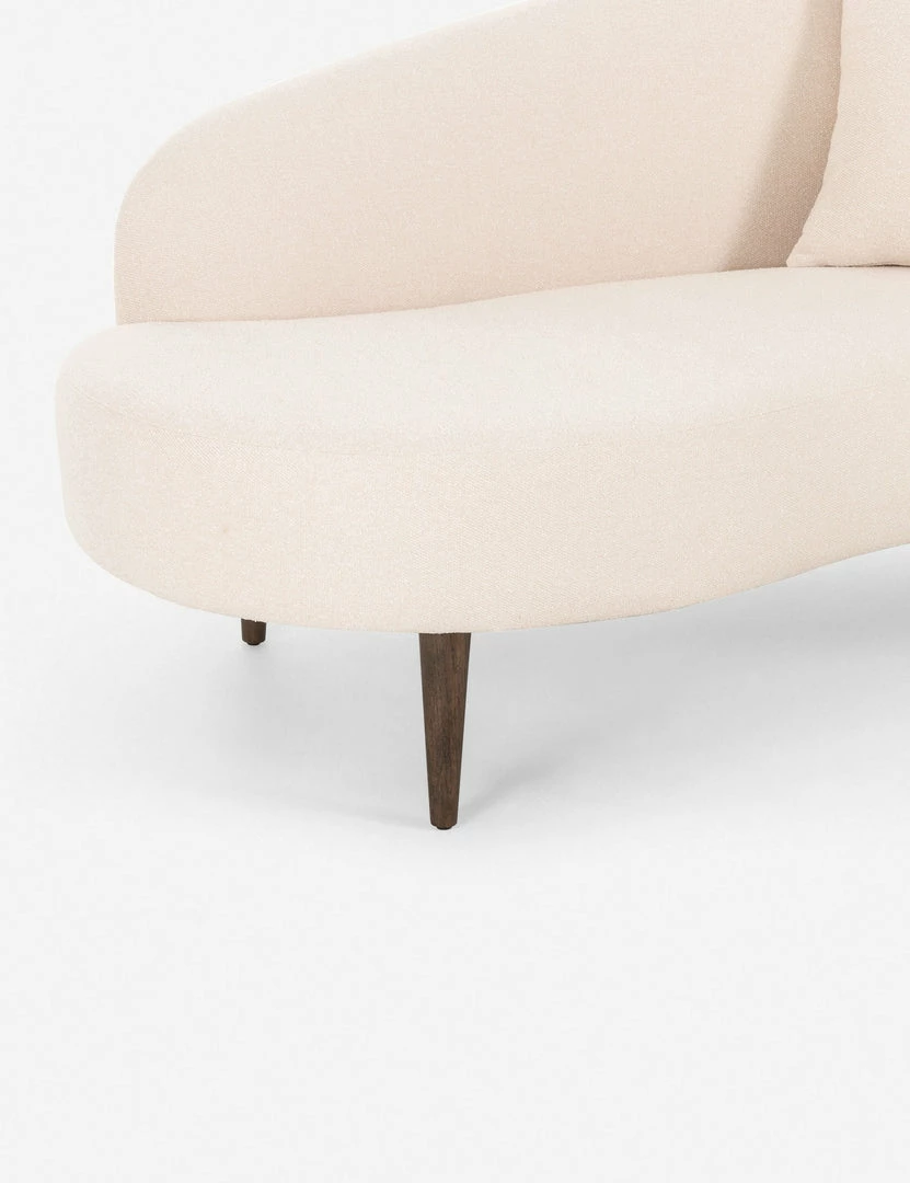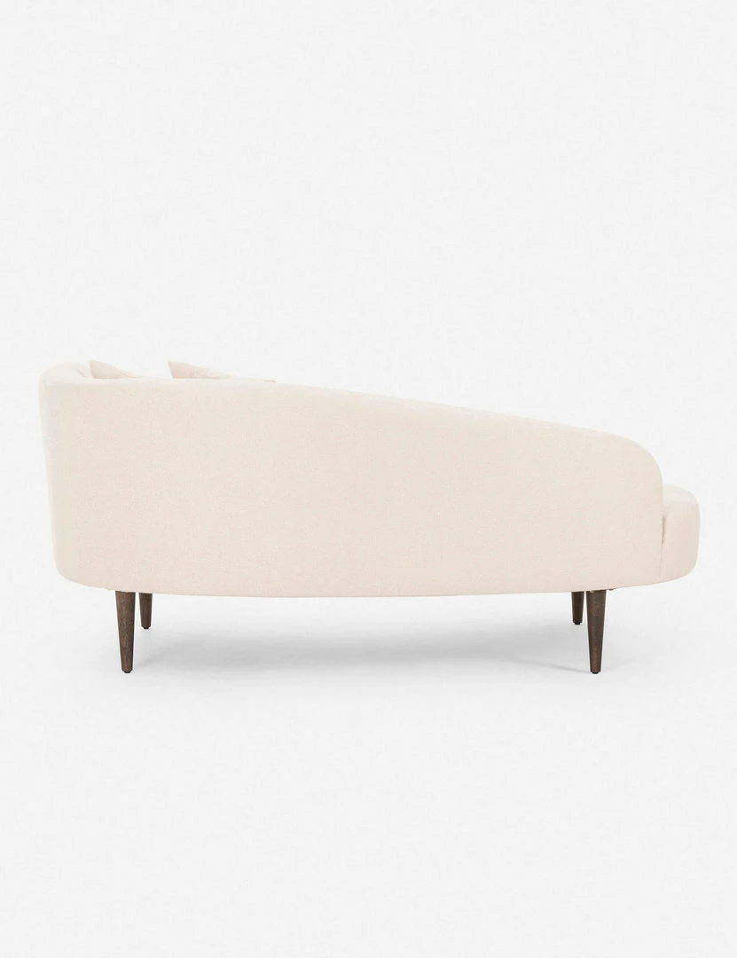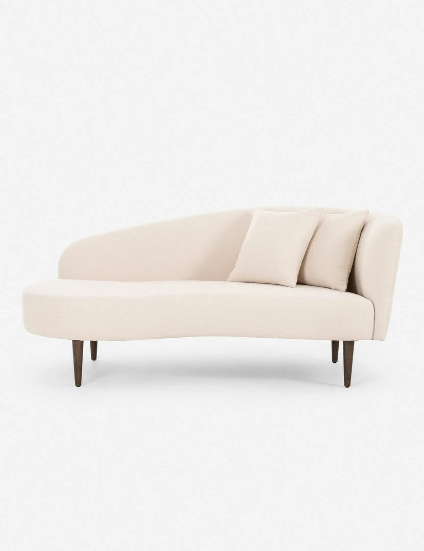 Seriously swoon-worthy. This upholstered chaise is designed with artful curves and a sloping back on tapered wooden legs for a sculptural look.