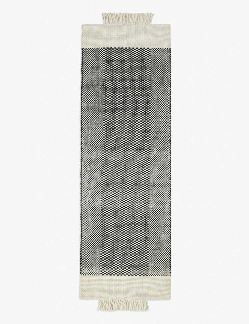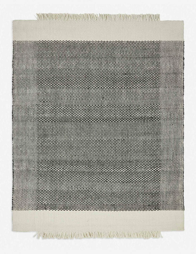 Our Joelle Rug is a handwoven flatweave that adds clean-lined style and polish to your living spaces. An asymmetrical fringe detail creates a subtle contrast in pattern to its two-tone design, and in black it sits well with industrial or minimalist styles.