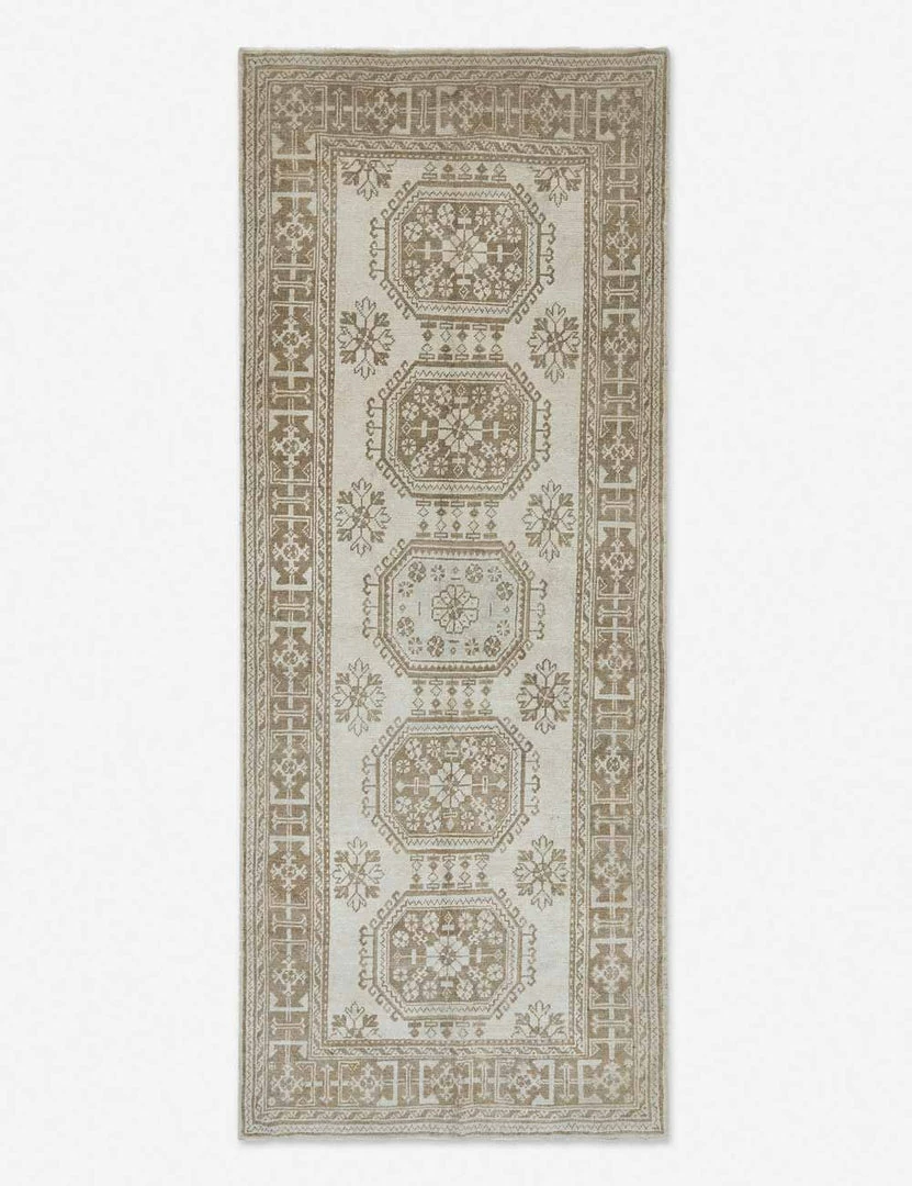 A vintage wool rug instantly transforms your spaceβadding warmth and rich color, all while feeling like a discovery from far-flung travels. Made entirely by hand in Turkey, this hand-knotted floor rug is truly an investment for your home, a stunning one-of-a-kind centerpiece to build and layer your style onto. This runner size is ideal for hallways, or in the kitchen.