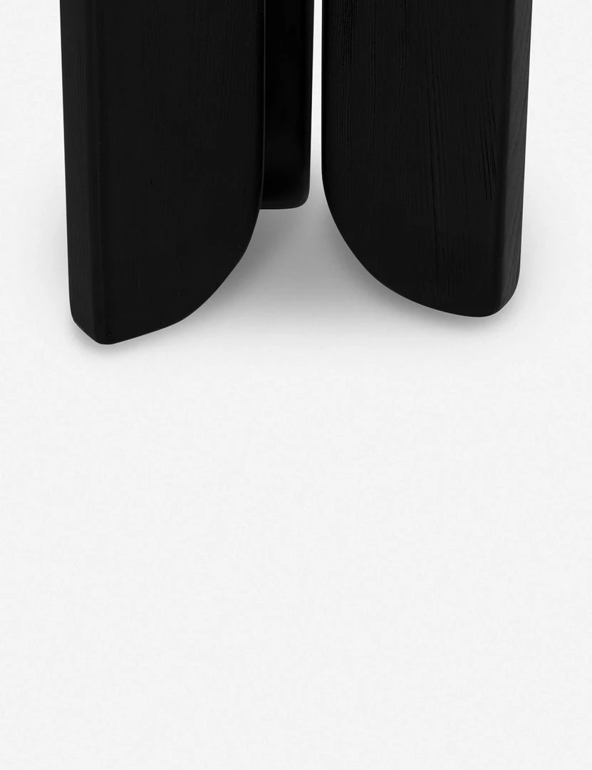 Elemental design and natural grain texture come together in this small end table. The three fin-shaped legs cast a soft silhouette that elevates this pared-down design with a sculptural appeal. Complement the lines of a streamlined sofa or style this oak side table with a plant to create an organic moment in your entryway or hall.