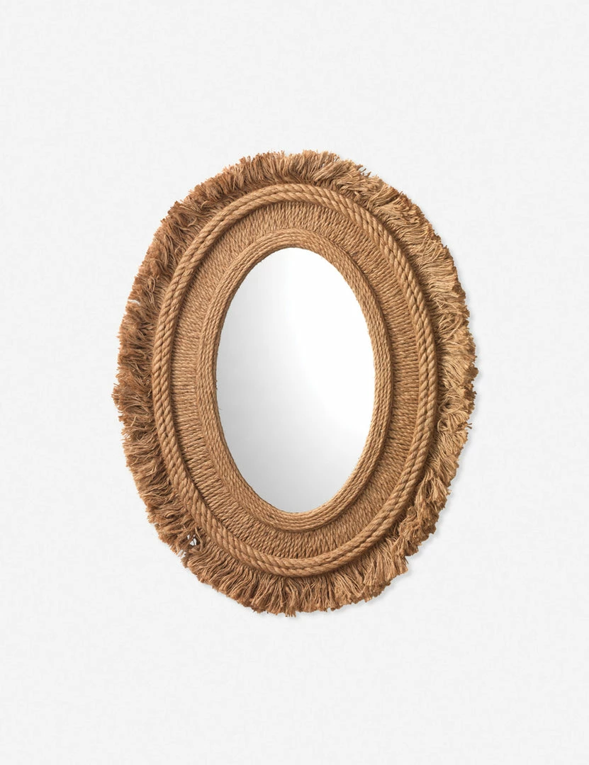 Signature style abounds with this unique jute mirror. The woven rope frame features a fringed edge bringing endless texture to your decor in an eye-catching oval mirror designβa finishing touch for a thoughtfully eclectic look.