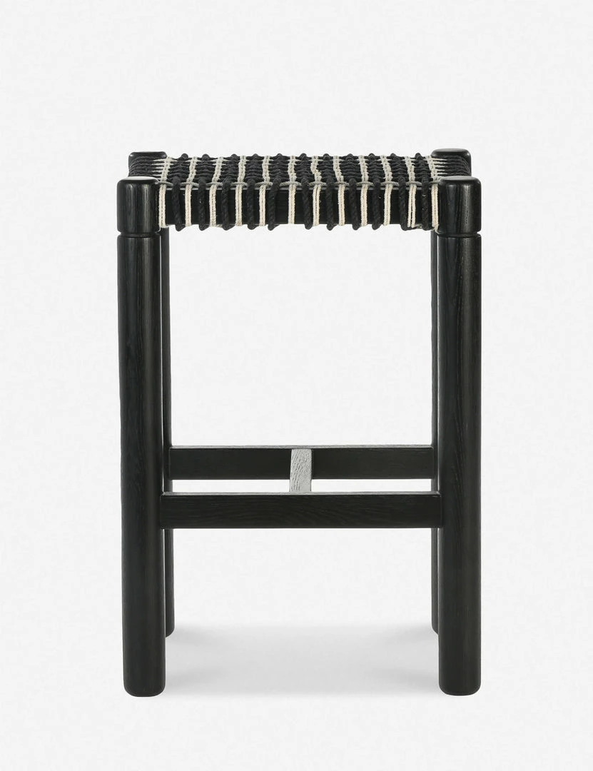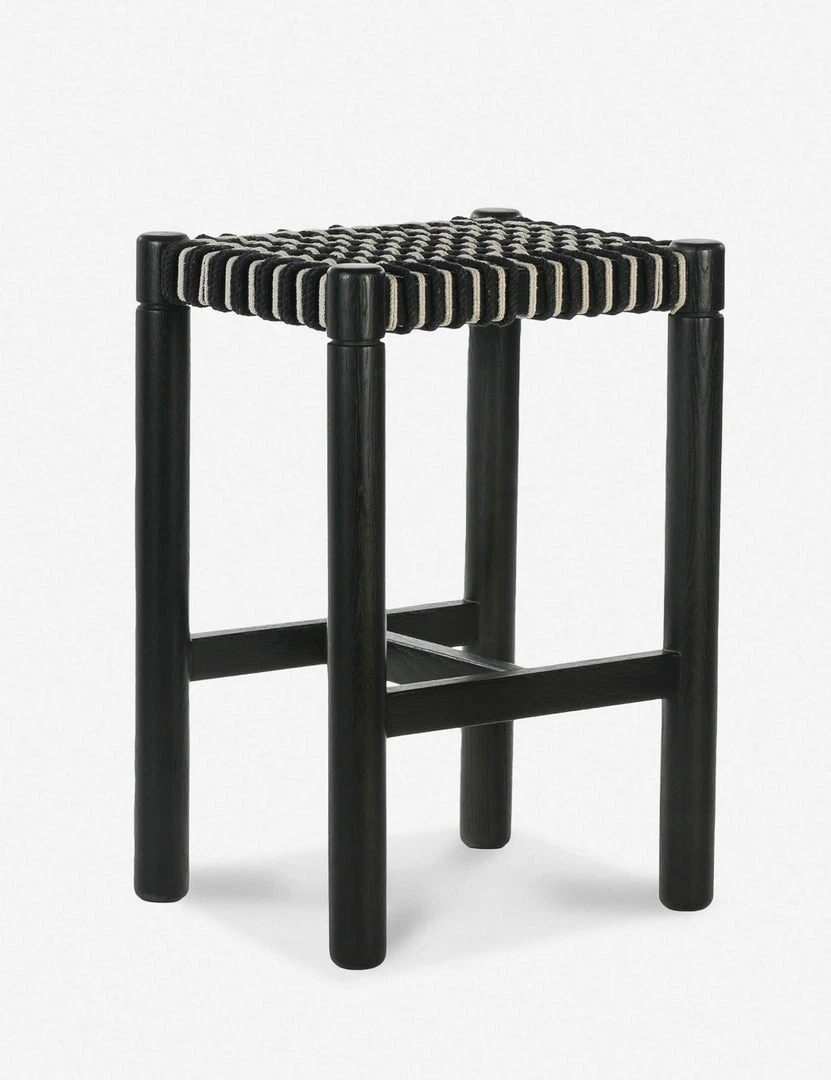 A clean oak frame features a beautiful wood grain and two-tone woven rope seat for texture-forward style in this versatile stool design. Whether styling in pairs for a unified look or layering into a collected aesthetic, this kitchen stool is the perfect blend of modern design with a natural touch.