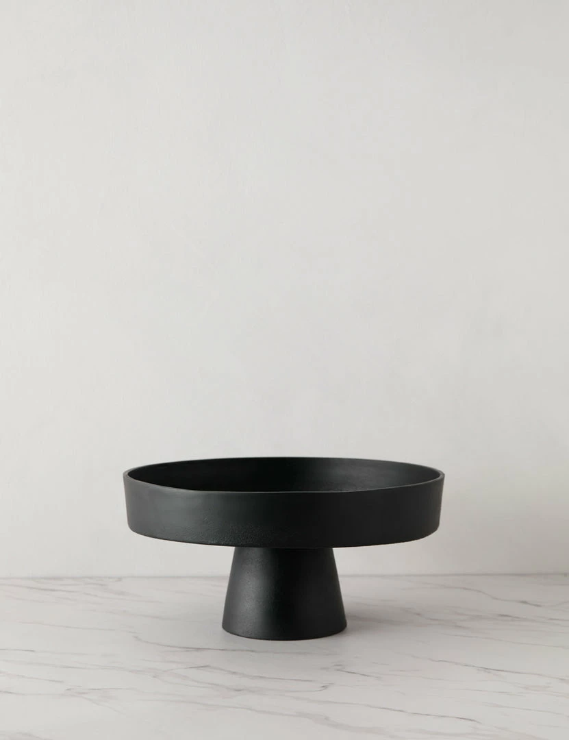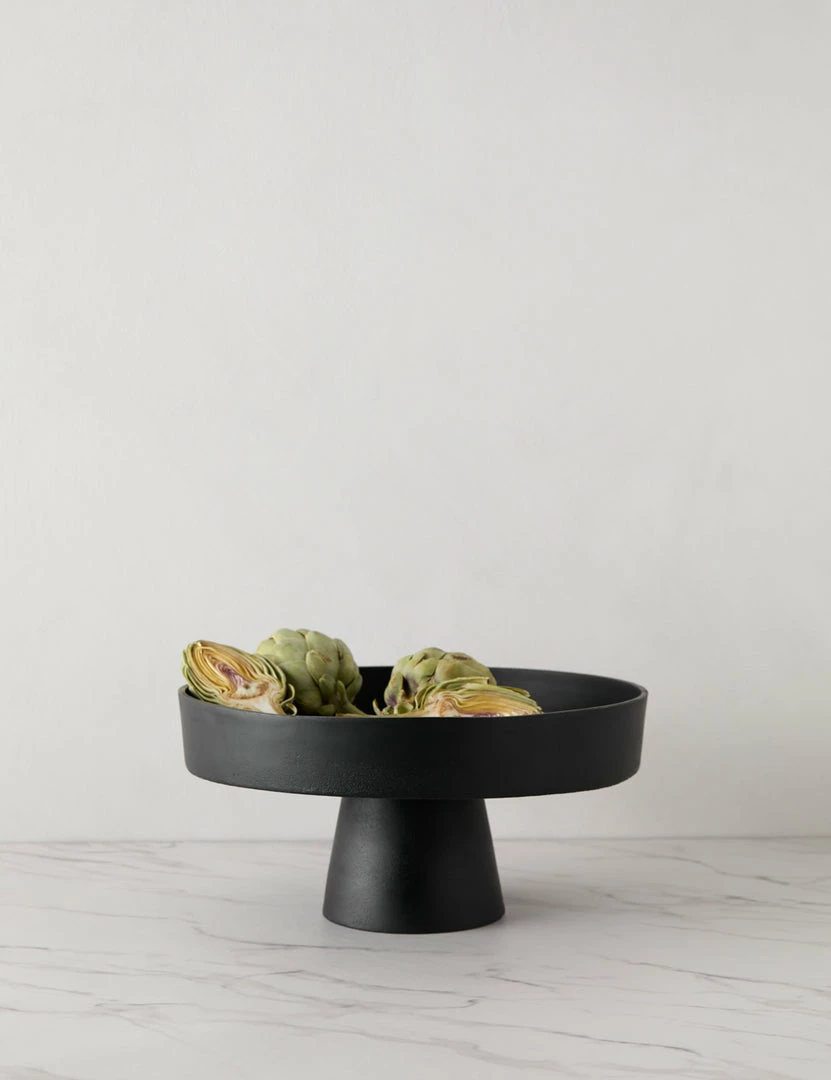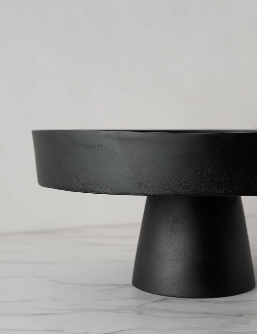 This clean-lined display stand sets off your tabletop or counter with minimalist elegance. In a sleek black finish, this metal pedestal offers versatile appeal in both function and style, from centerpiece decor to a fresh offering of pastries or baked goods.