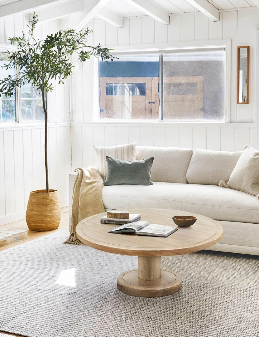 The simplified shape on this wooden living room coffee table makes it an instant focal point in any living room or lounge space. We especially appreciate the layered rounded forms and how they show that you don’t have to improve on classic lines to find success in design. Try styling our Kirsi Coffee Table with stacked books, handmade ceramics, and fresh cut branches.
