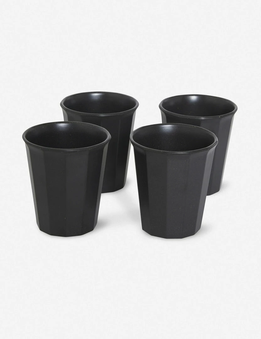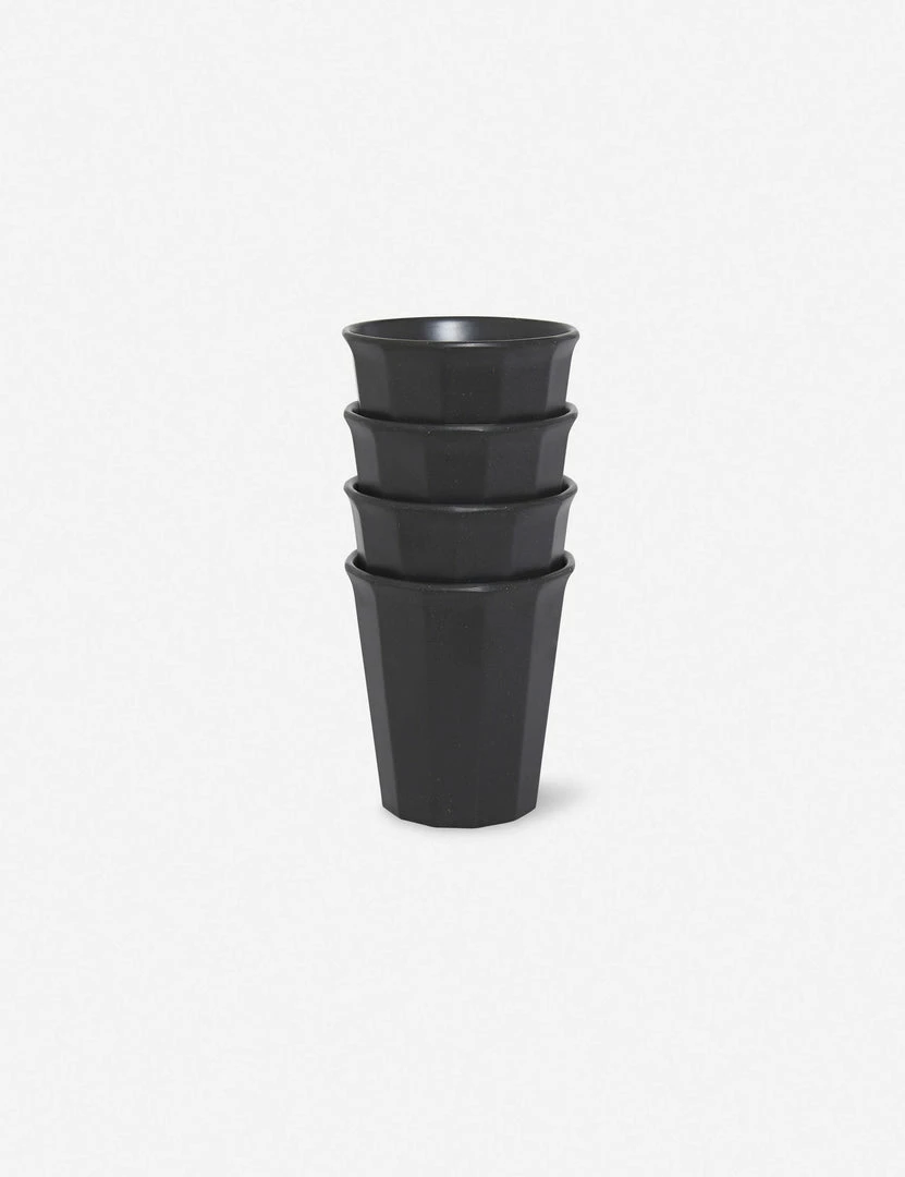 Featuring a tactile, matte finish and subtly faceted design, elevate the look of your dining space with this set of tumblers. Indoors or out, this tableware offers streamlined style and versatility. Constructed from food-safe melamine and highly-renewable bamboo fiber, this set is durable, reusable, and even dishwasher-safe.