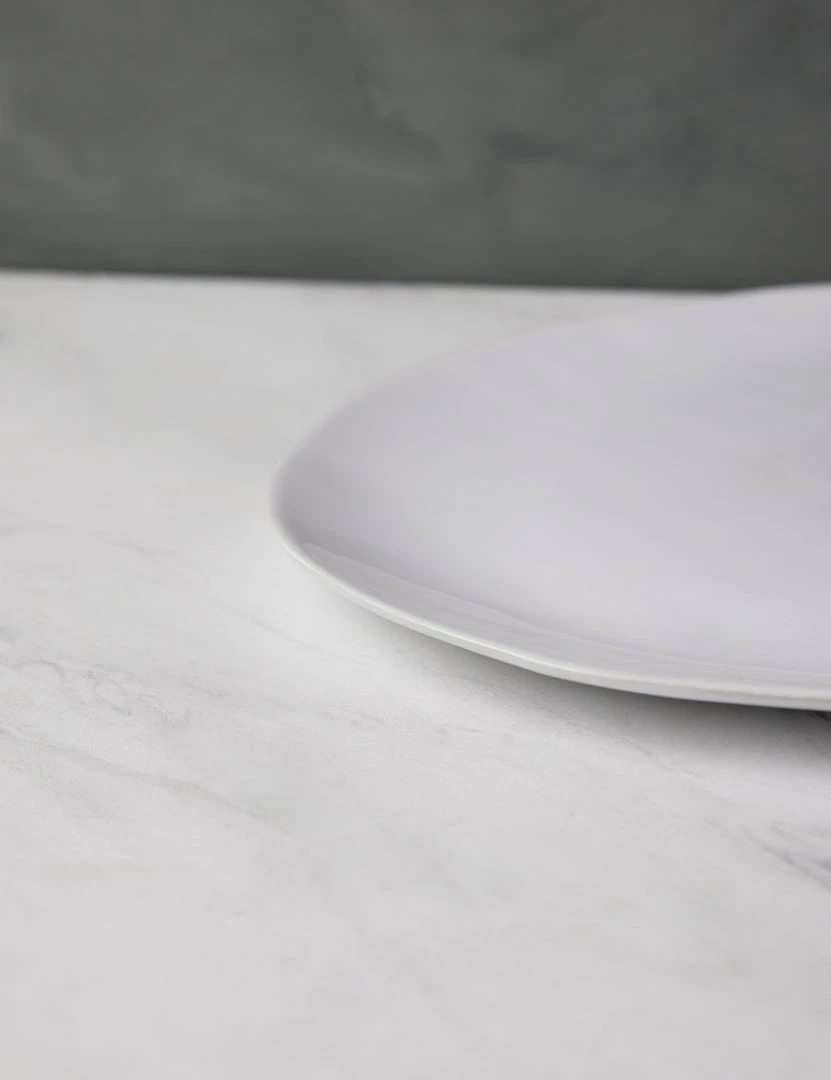 An artisanal touch marks the fluid forms of this large platter from the Hawkins New York Organic Dinnerware Collection. Each stoneware piece is crafted and hand-painted in Portugal for a durable platter with a white ceramic luster and refined, earthy appeal to serve up savored favorites.