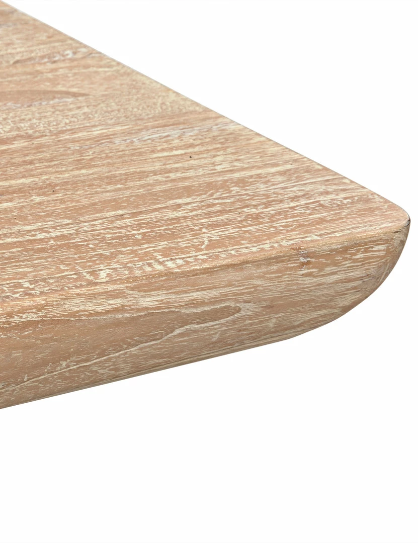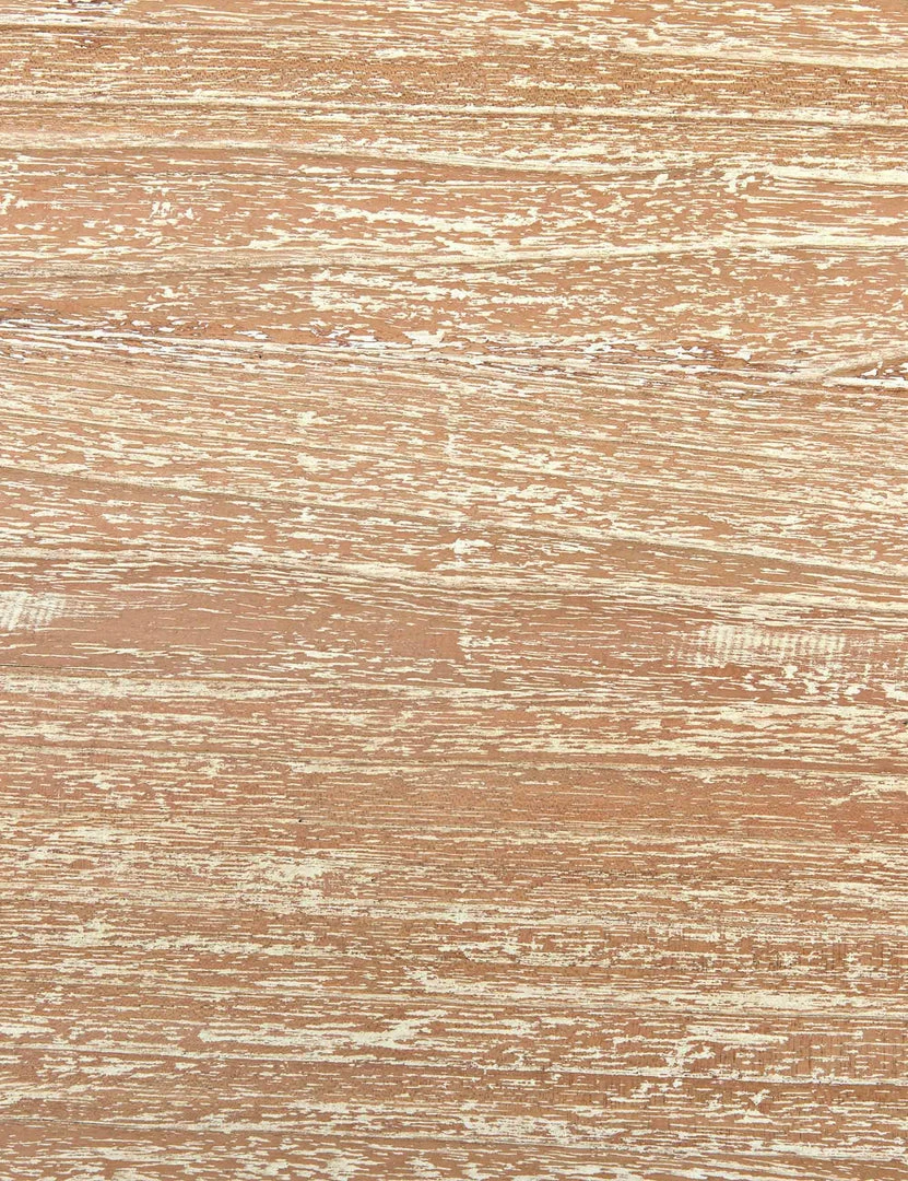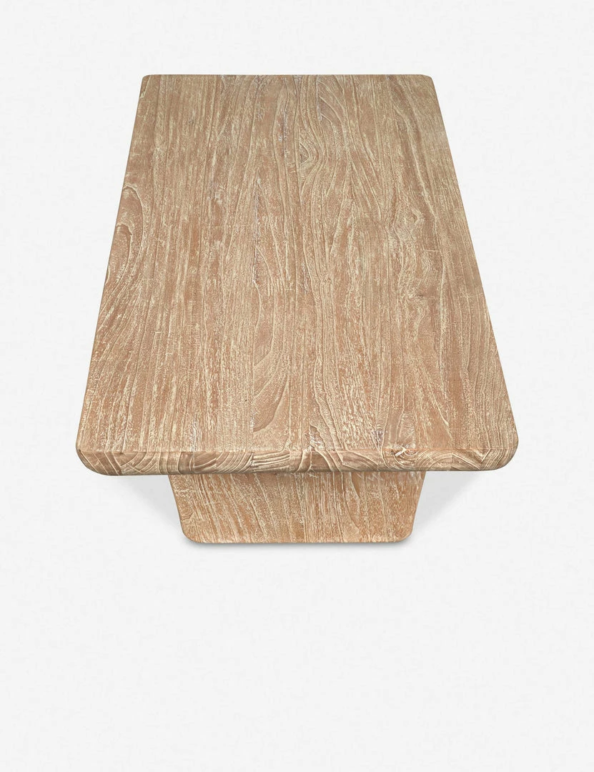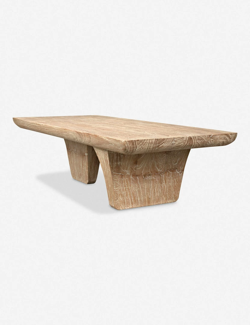 With its sculptural base and weathered look, this wood coffee table is a statement maker for your living room. Crafted from solid Mindi wood, its rough-hewn finish adds rustic appeal to a space. Style this coffee table with a plush vintage rug for tons of organic texture.