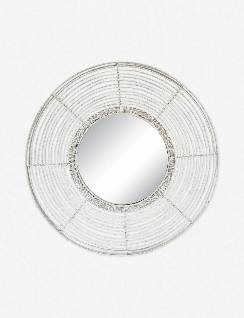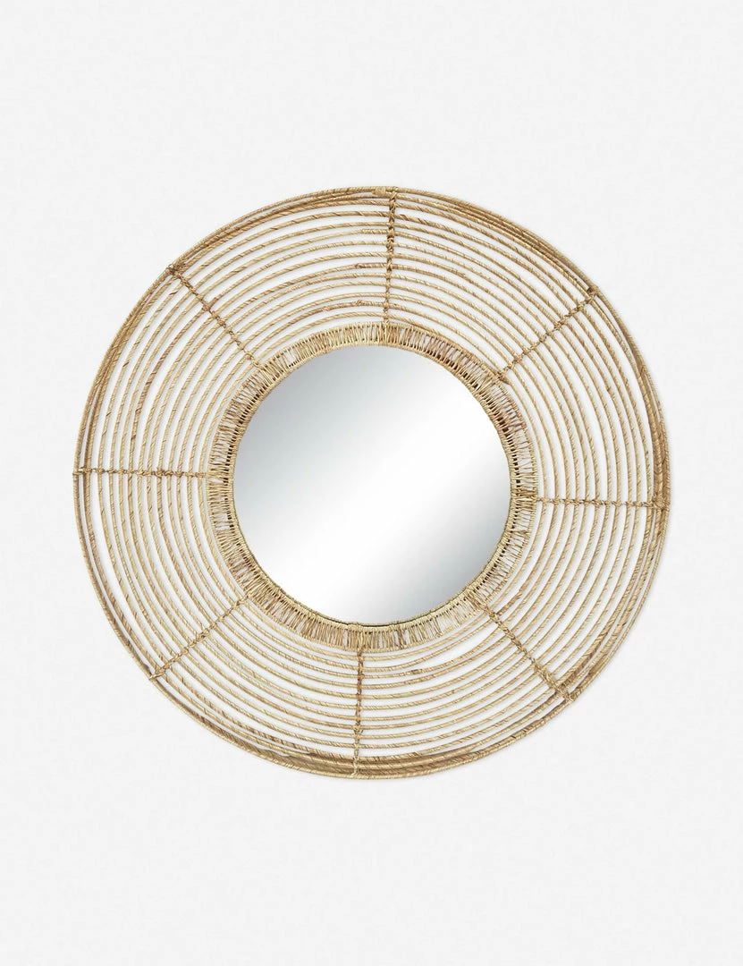 A spoked frame is tightly wrapped with jute fiber in this round wall mirror design. With its organic style and airy profile, this decorative wall mirror offers a raw, textural accent for a laid-back space with coastal-inspired undertones.