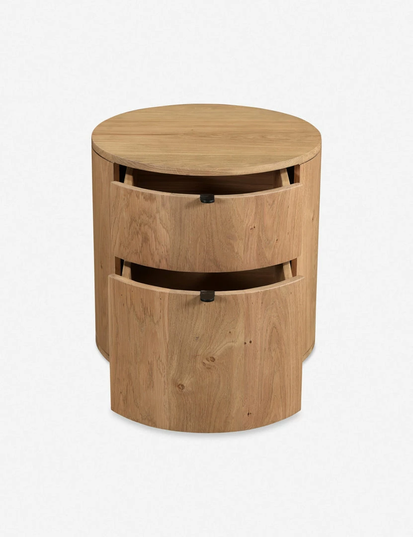 Crafted from solid oak, the Kono Nighstand is a beautifully versatile piece for your bedroom. This bedside table’s curved silhouette creates visual interest, while two soft-closing drawers provide storage for the best of form and function.