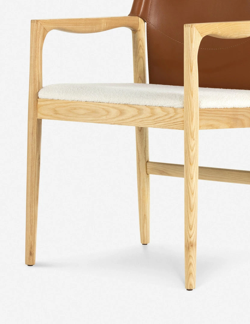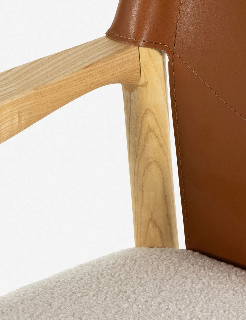 Bring a warm, modern tone to the table with this mixed-material dining chair. The saddle leather back and soft, cream upholstery set off a solid ash frame for a refined touch with endless styling potential. This design offers versatile appeal as dynamic accent seating or a dining room chair.