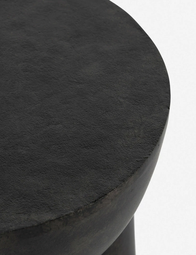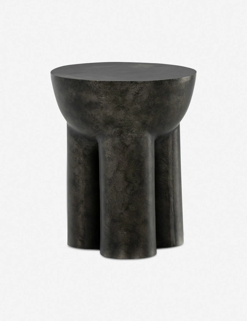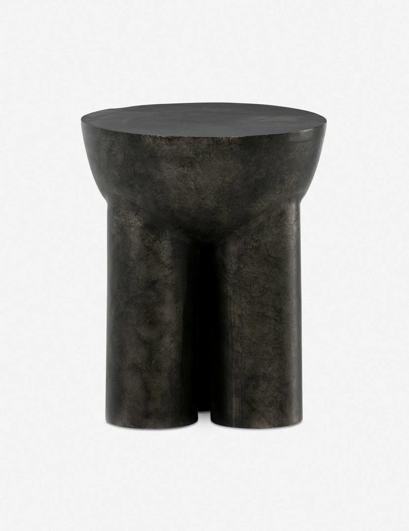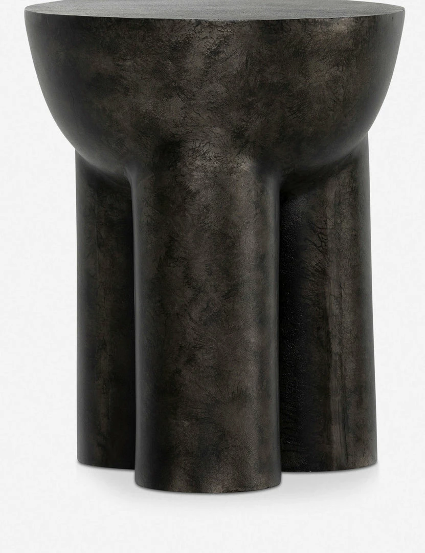 Dynamic textures course through this cast-aluminum end table. Its raw finish, chunky-leg design and drum-style top ground the profile with a sculptural appeal. Style this side table in a space full of natural materials and dark finishes for a unique element in a moody look.
