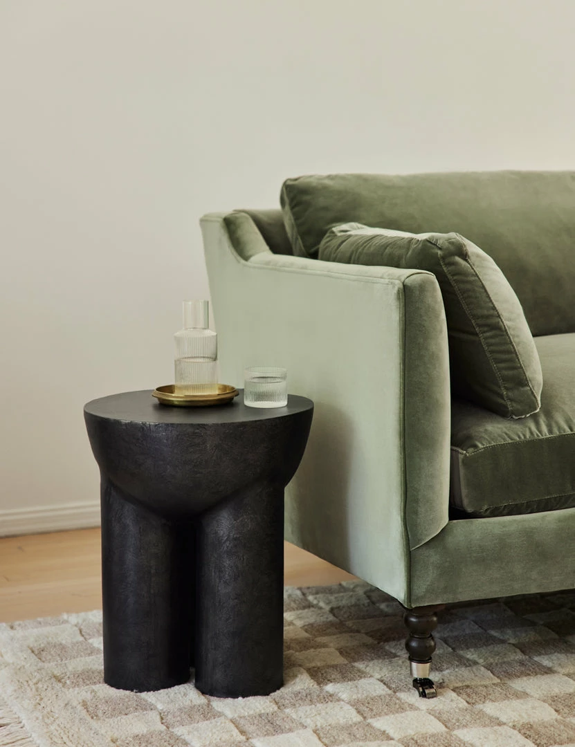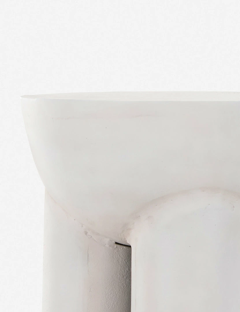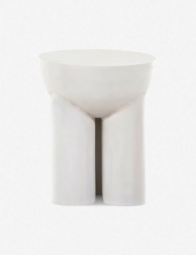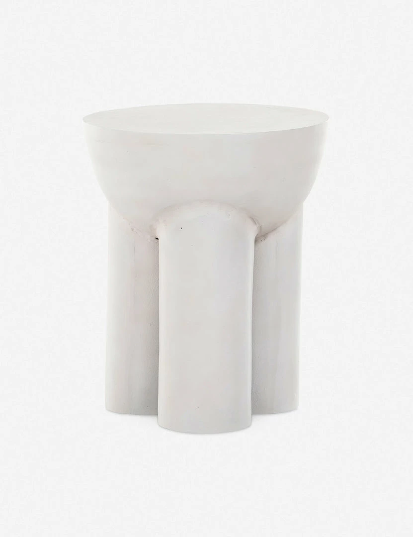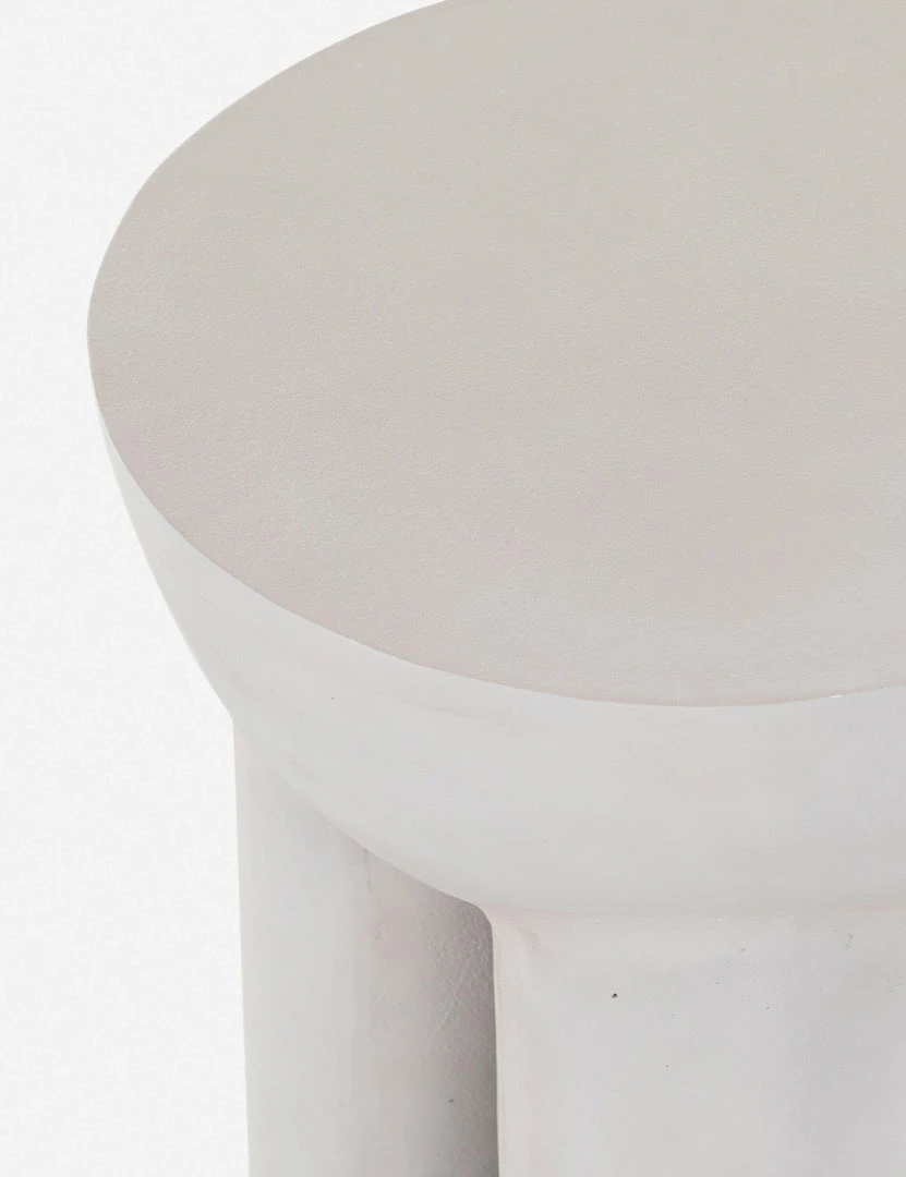 Dynamic textures course through this cast-aluminum end table. Its raw finish, chunky-leg design and drum-style top ground the profile with a sculptural appeal. Style this side table in a space full of natural materials and dark finishes for a unique element in a moody look.