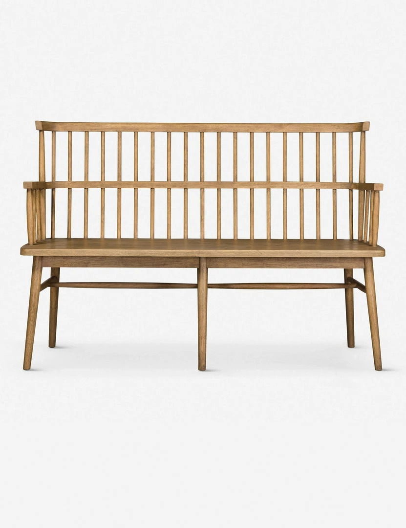 The Lanae Bench is a Scandinavian take on the classic Windsor style. Perfect for entryways or adding a cozy seating option to your dining room, the high wrapped spindle back and deep seat give off a modern farmhouse feel.