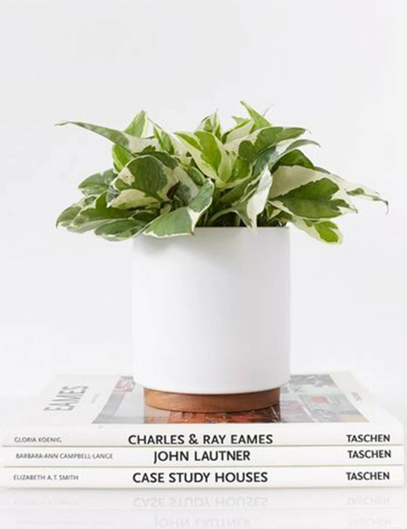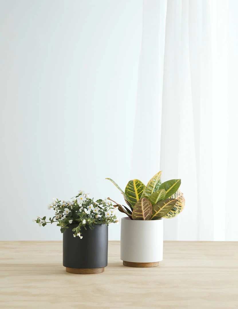 Hand-finished with a matte glaze, this ceramic planter is waterproof, so it can be used on furniture or for floor use. Paired with a hardwood plinth base, it’ll stand out displayed alone atop your sideboard or in a cluster of planters by your window.