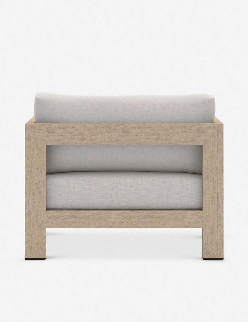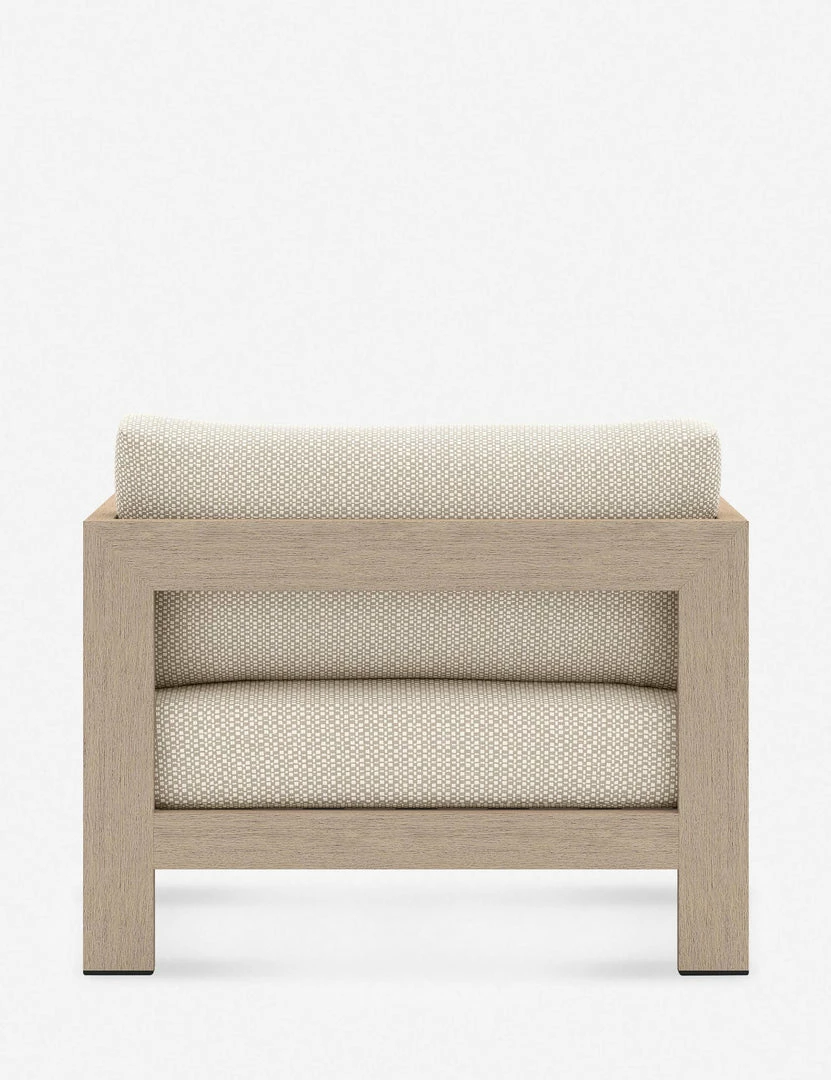 Clean, linear design evokes understated appeal in this low-slung accent chair. With plush cushions and soft, desert tones, this elemental chair offers the perfect grounding touch for a patio, sunroom, or poolside lounge.